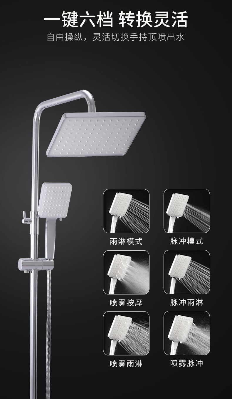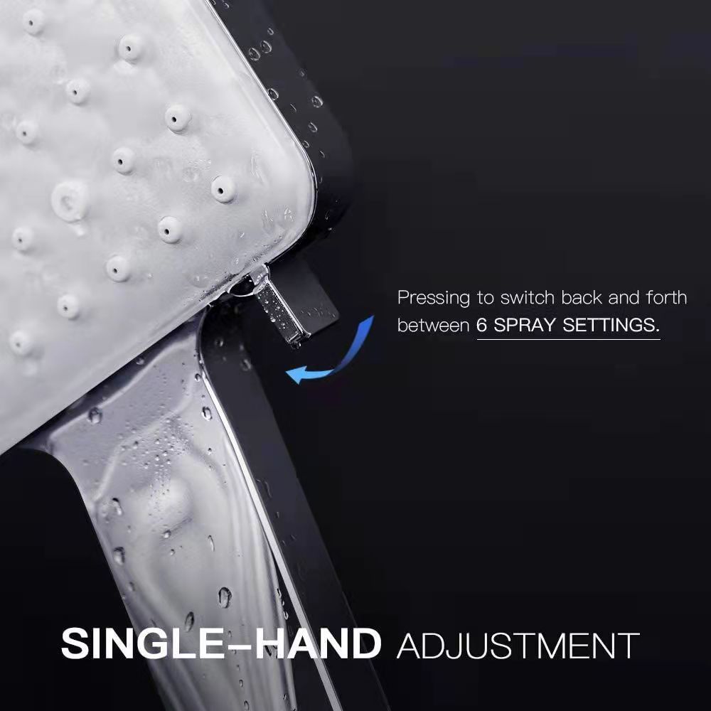 跨境手持花洒方形6功能换挡拨片增压欧美淋浴喷头莲蓬头 花洒套装