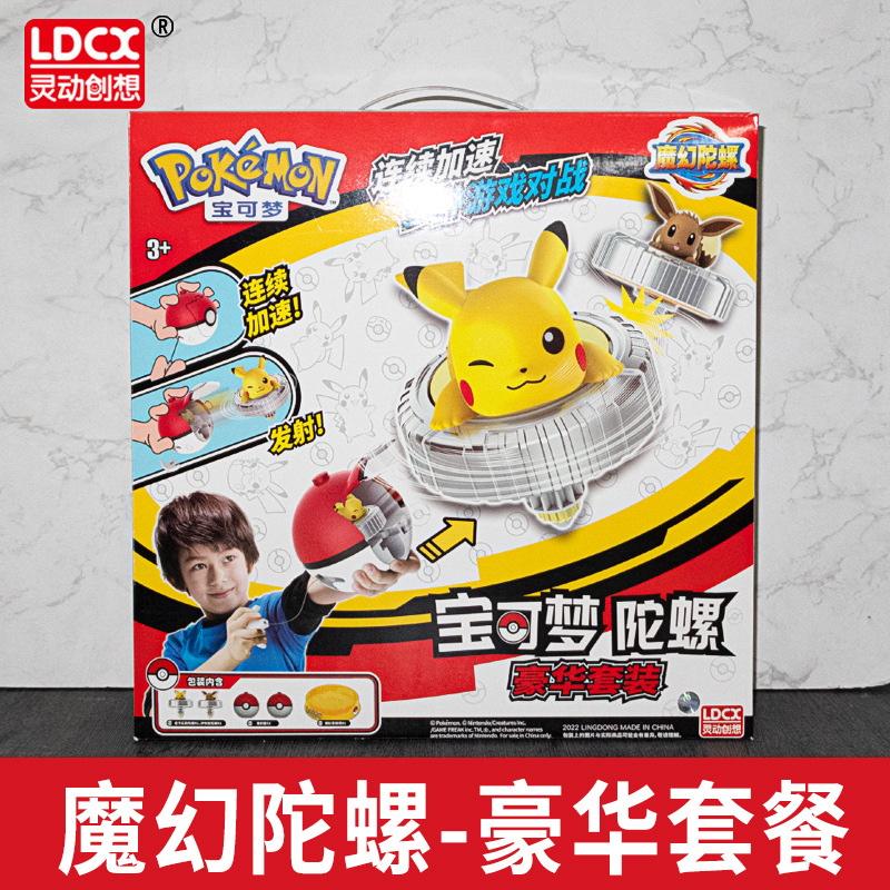 宝可梦魔幻陀螺玩具儿童男孩皮卡丘小火龙新款战斗旋转战陀精灵球