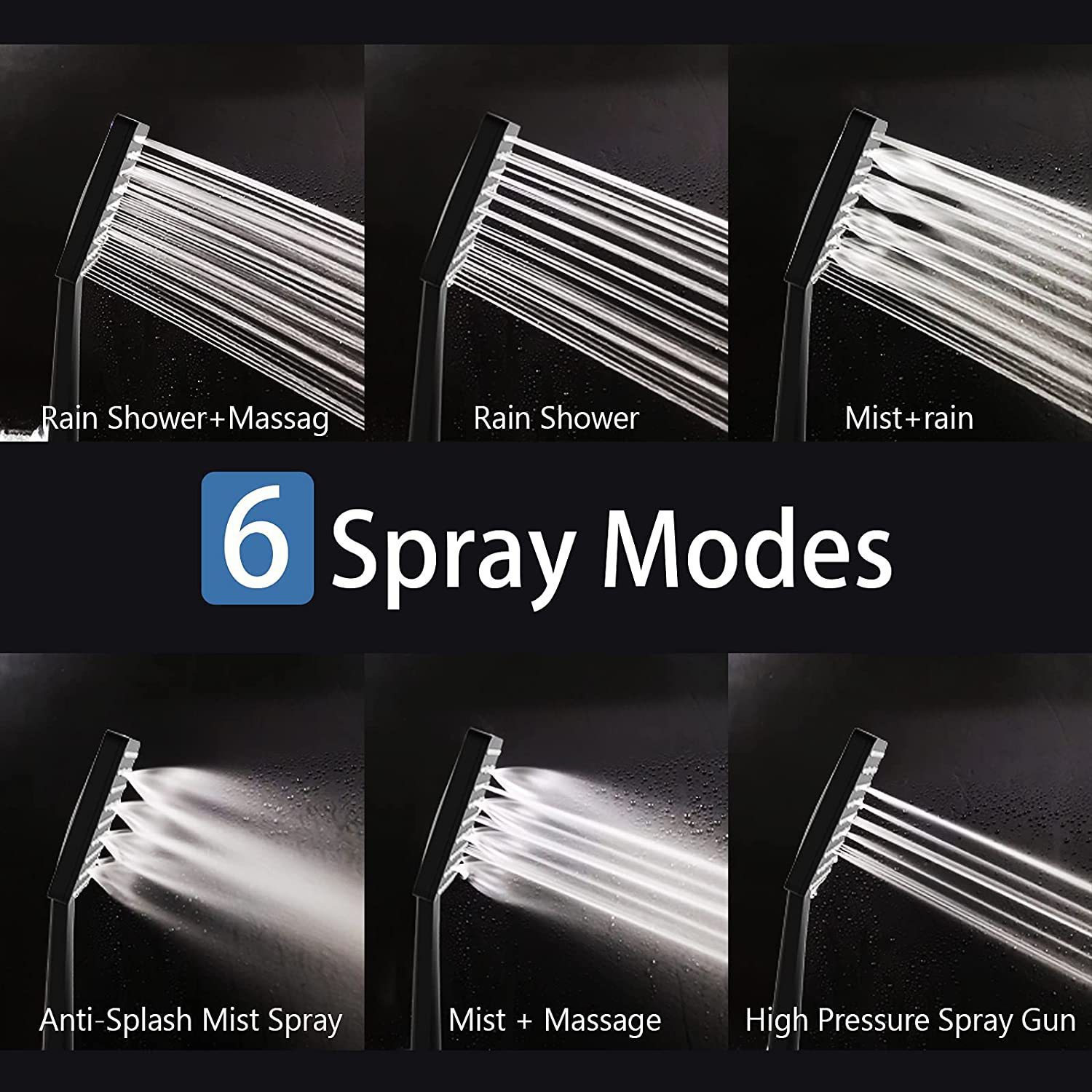 定制方形手持花洒6功能增压欧美淋浴喷头6档哑光黑色手持花洒套装