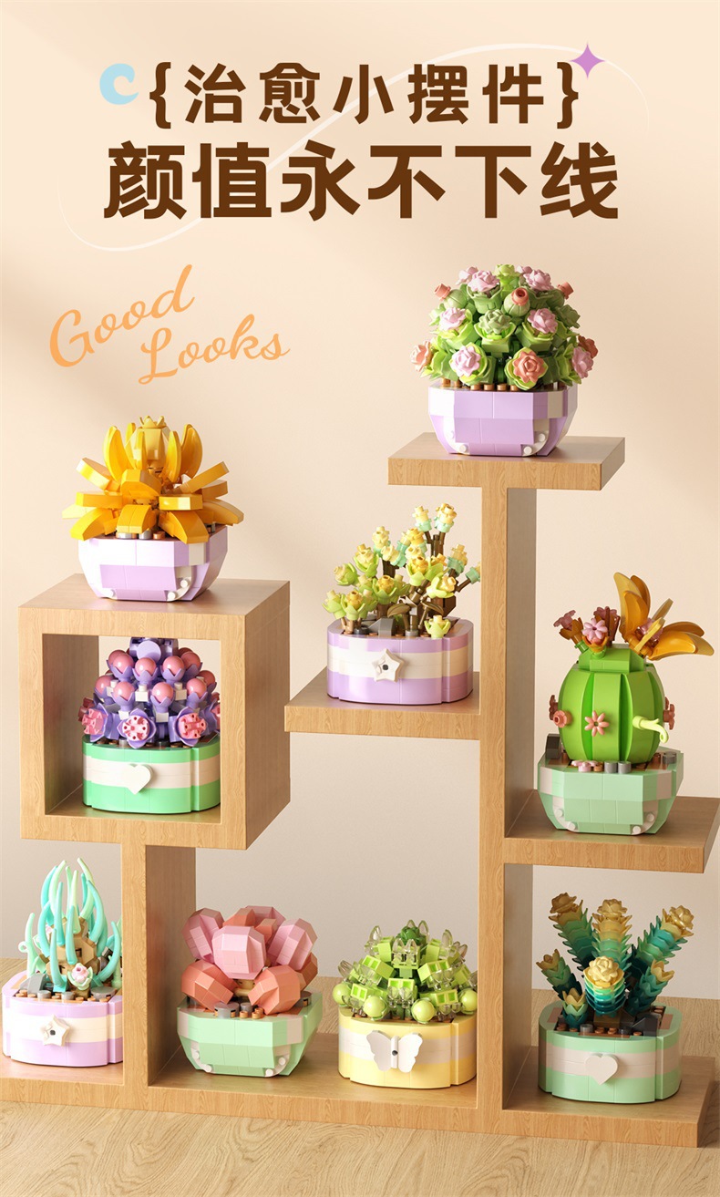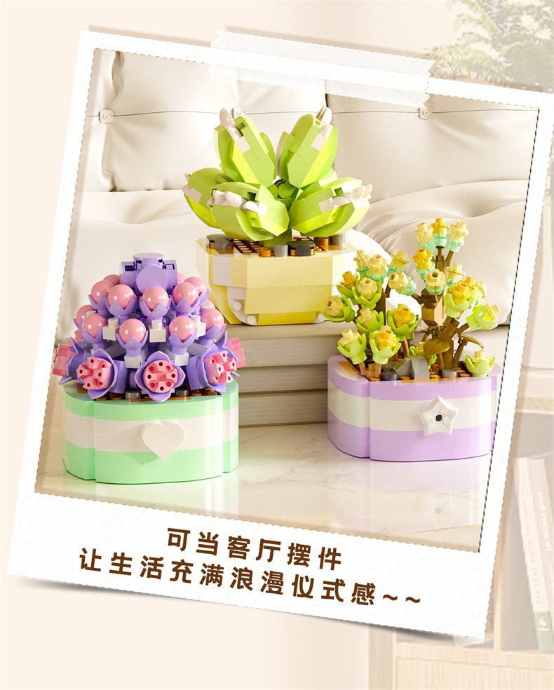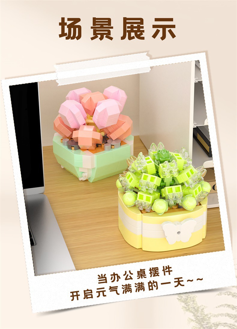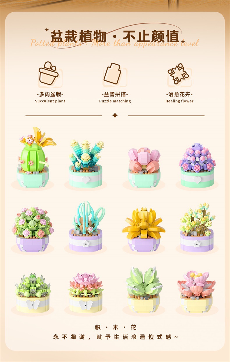 多肉盆栽摆件拼装小积木儿童玩具兼容乐高男女孩礼物批发摆摊跨境