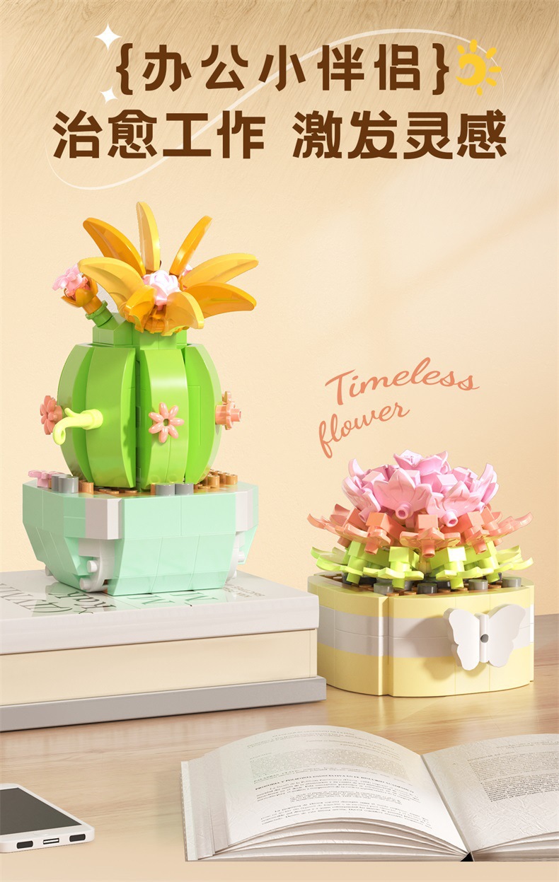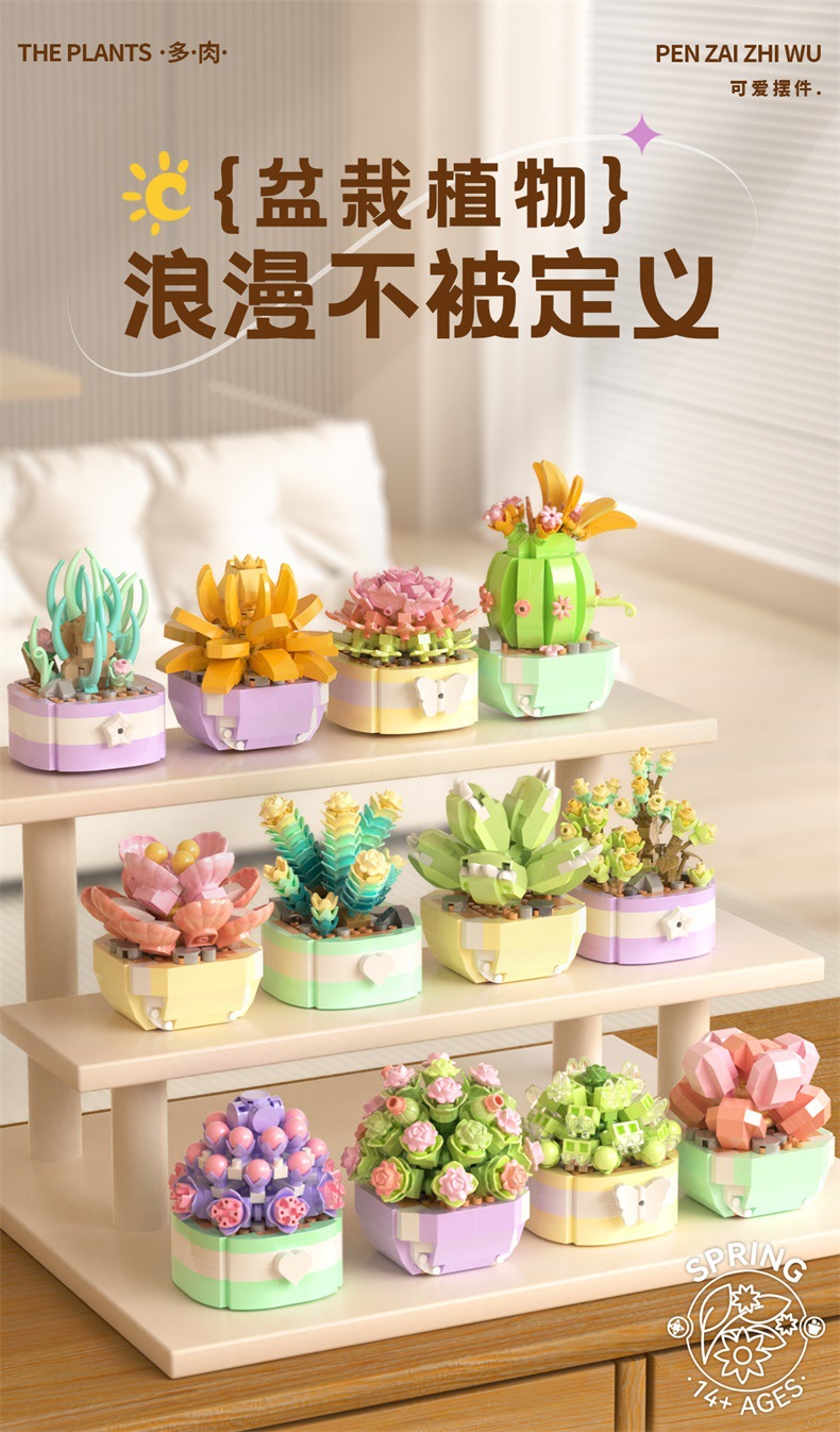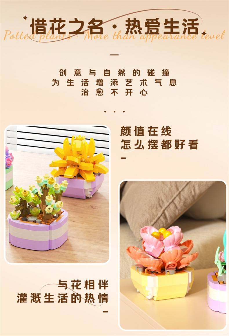 多肉盆栽摆件拼装小积木儿童玩具兼容乐高男女孩礼物批发摆摊跨境