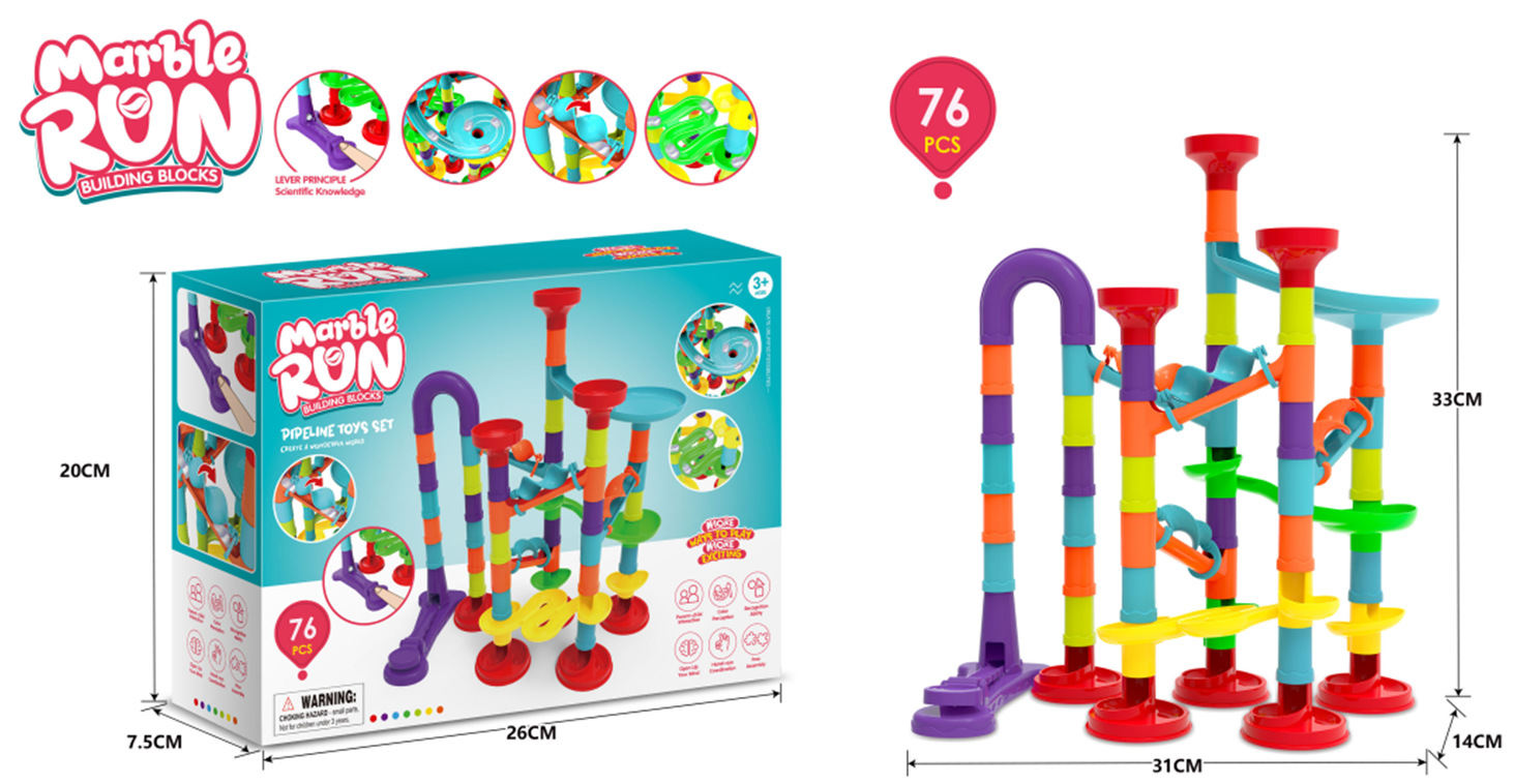 跨境百变立体弹射轨道滚珠滑道积木拼装迷宫管道亚马逊儿童玩具