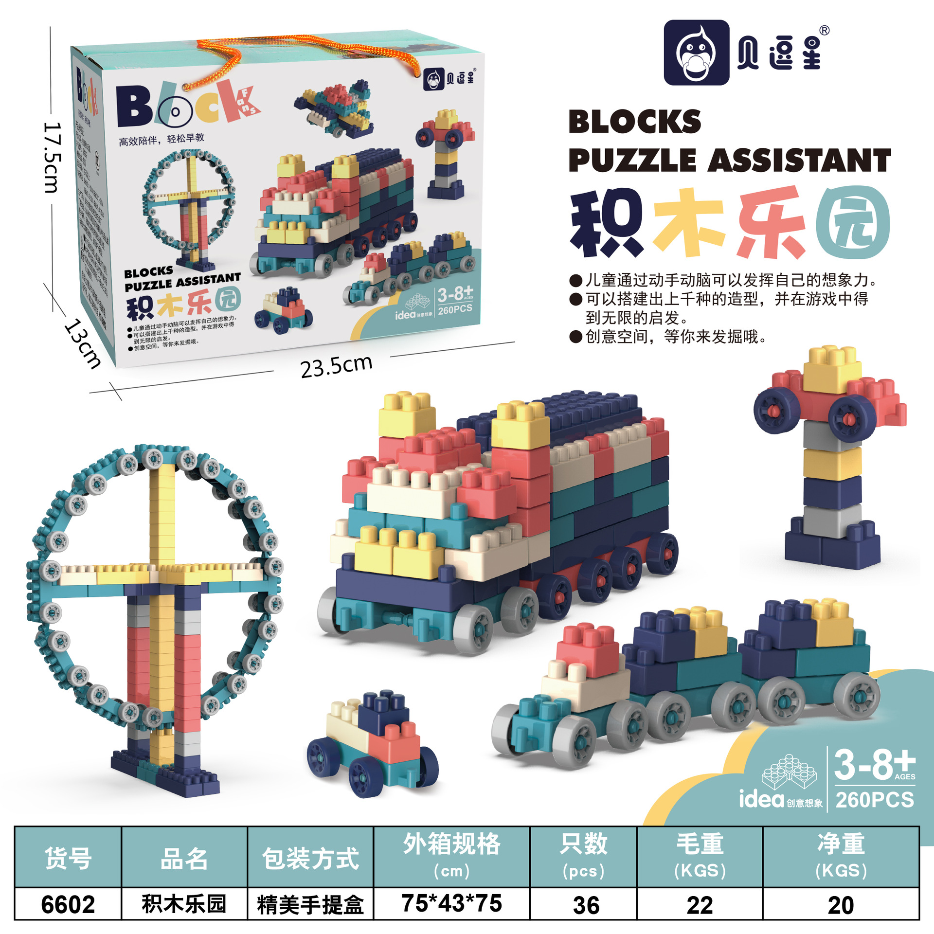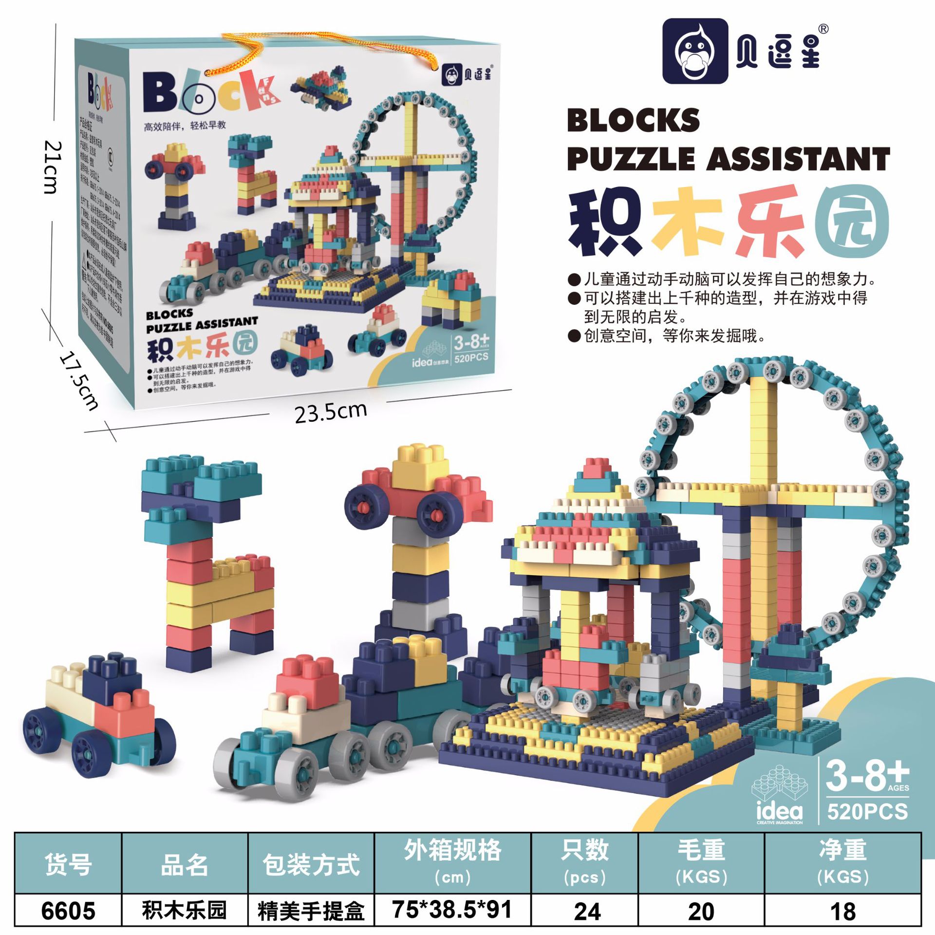 跨境儿童益智积木玩具大颗粒拼装积木乐园教育机构幼儿园礼品地摊