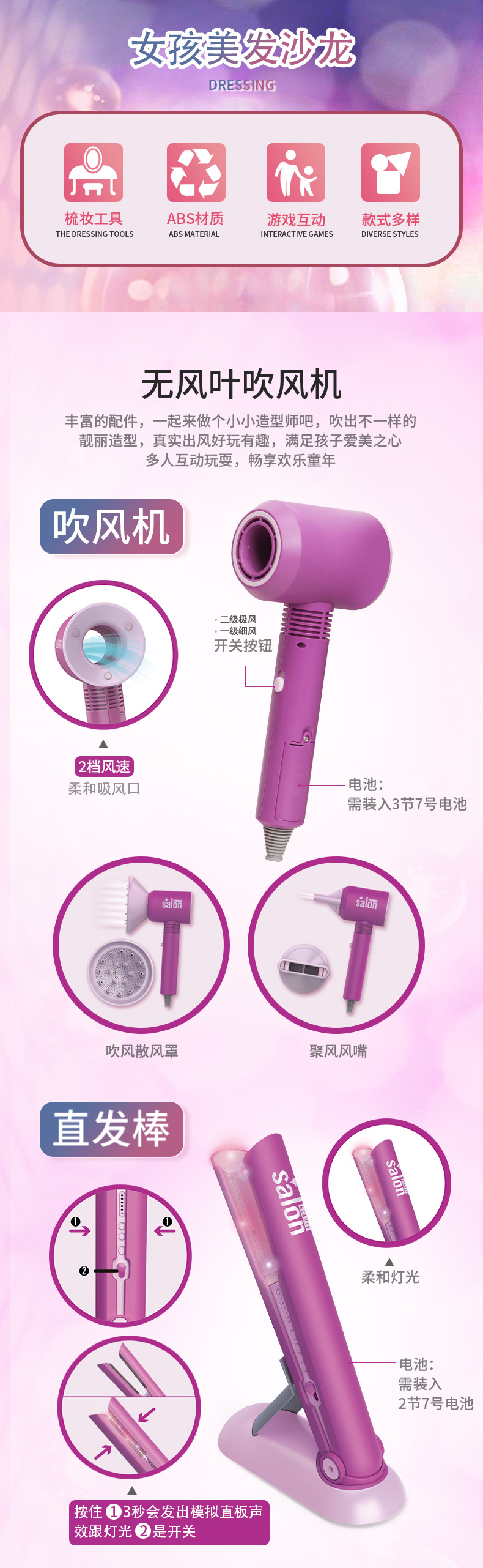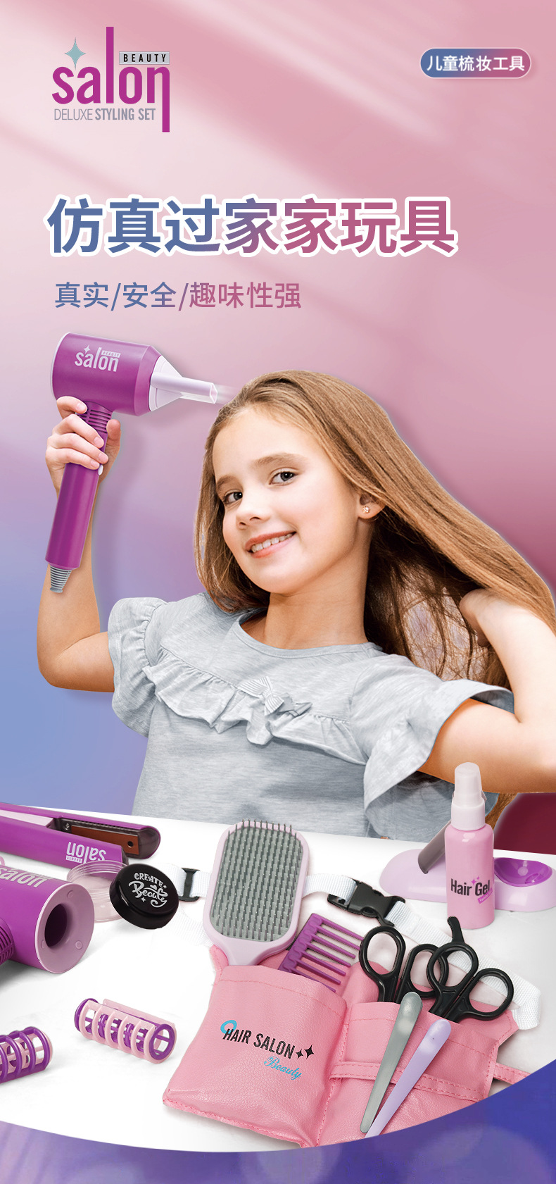 厂家直销跨境儿童仿真吹风机直发棒套装过家家女孩梳妆幼儿园玩具