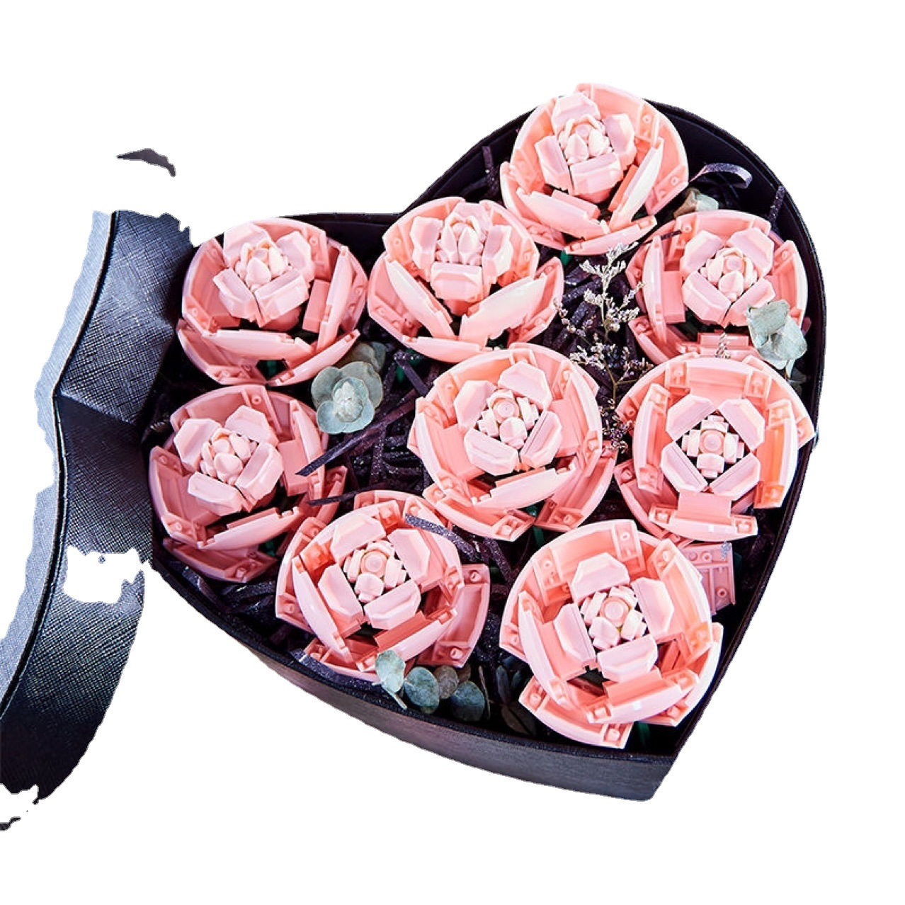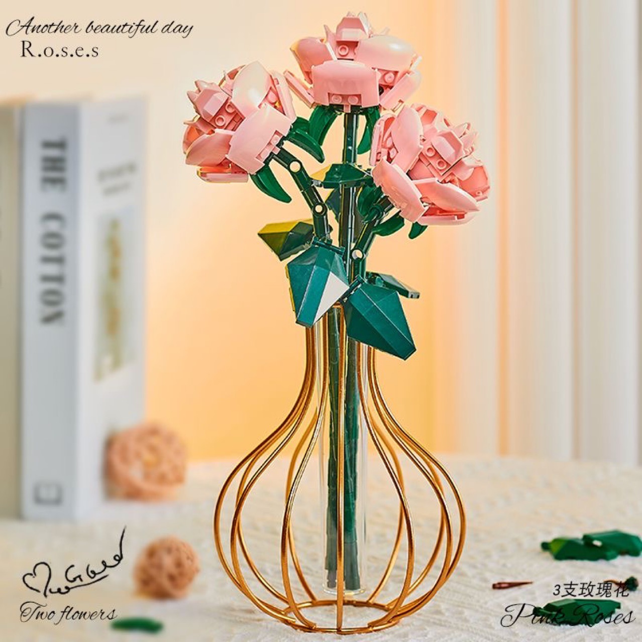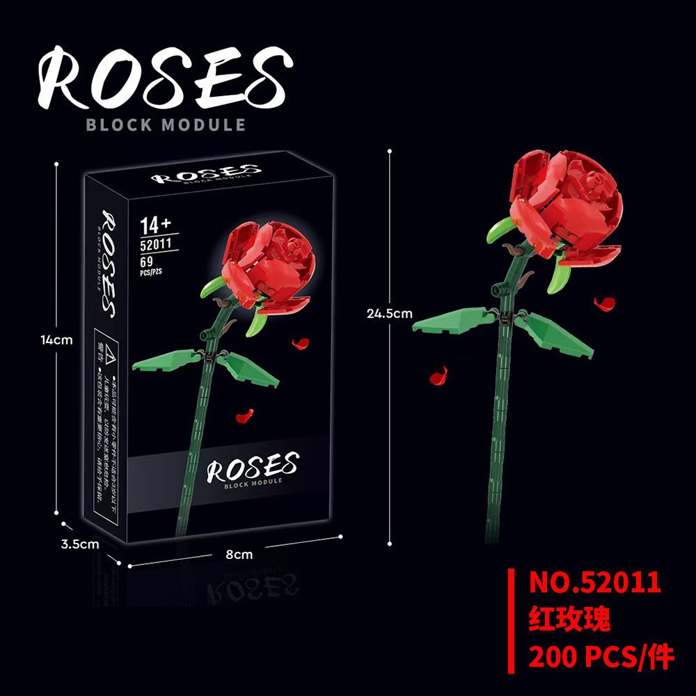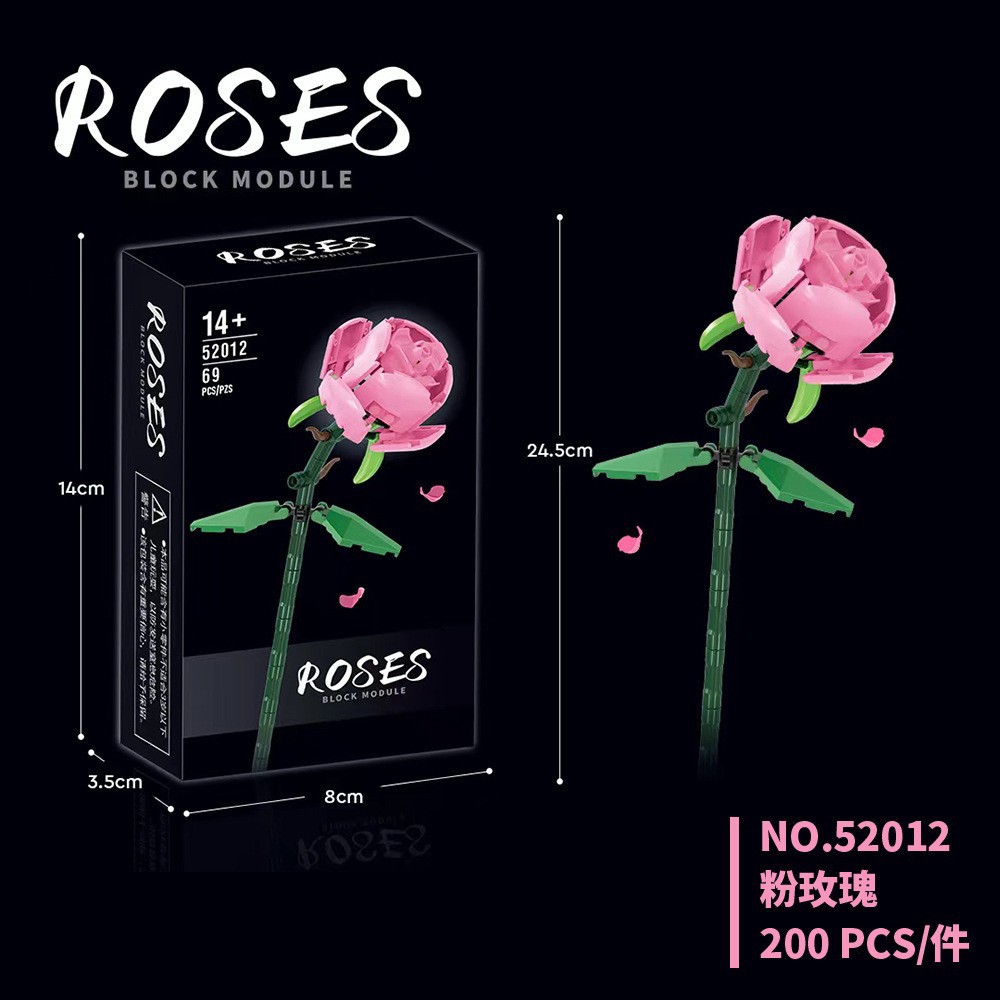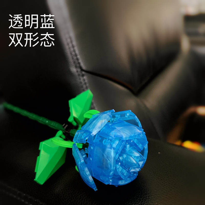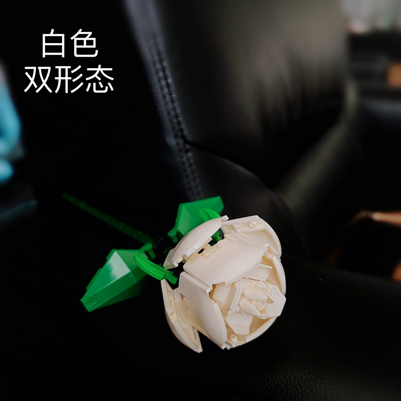 跨境玫瑰花积木兼容乐高花束永生花粉玫瑰向日葵郁金香拼装玩具