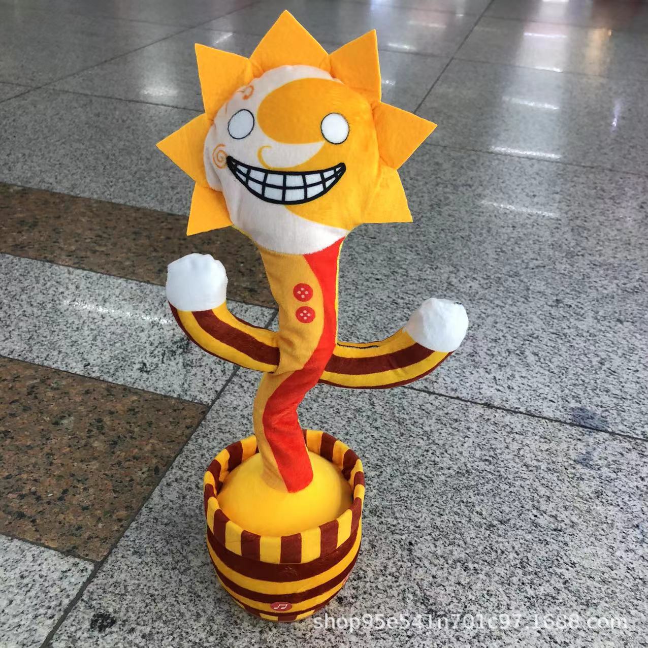 跨境新品电动太阳花小丑公仔毛绒玩具 唱歌跳舞学说话录音玩具