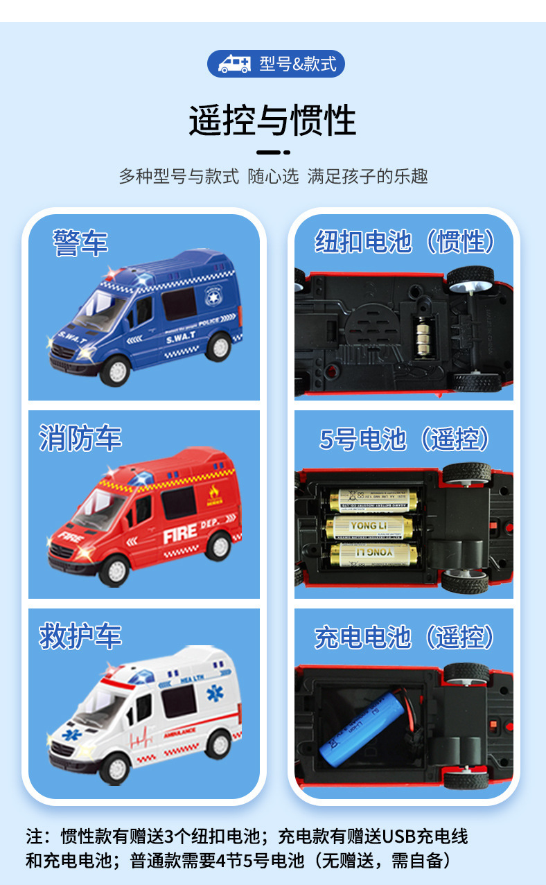 跨境热销遥控玩具车汽车遥控车救护车警察车消防车玩具电动车玩具