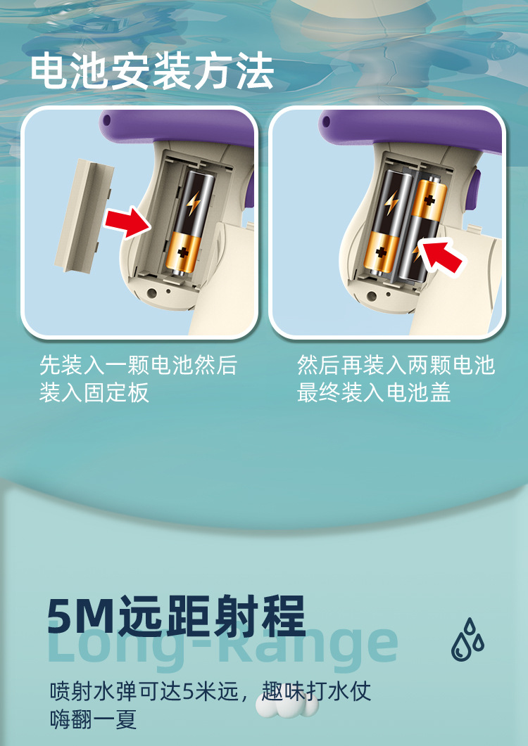 夏季新款电动连发小水枪蜗牛打水仗超远射程呲滋水枪儿童玩具批发