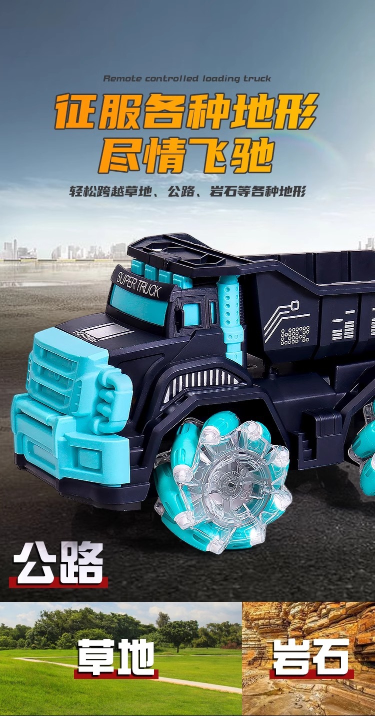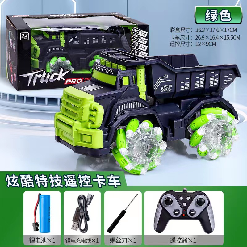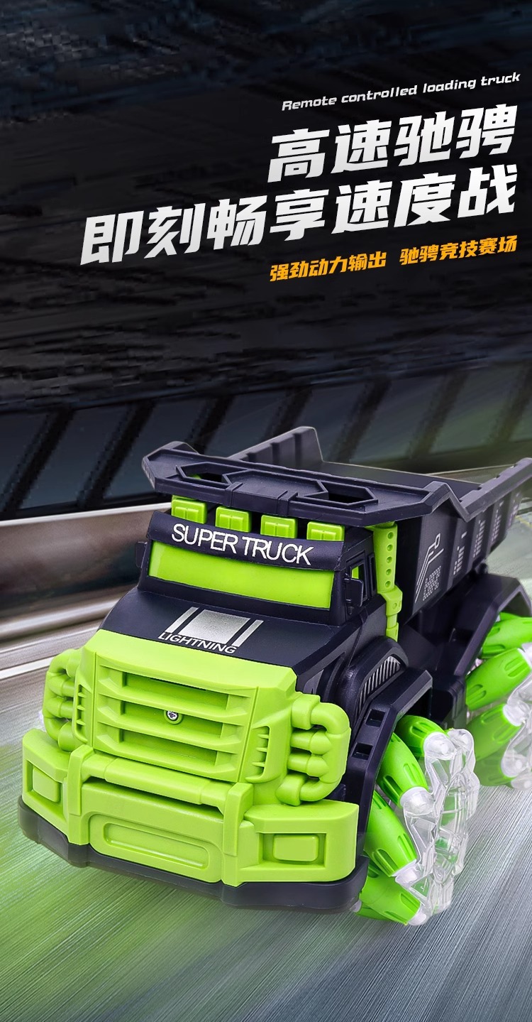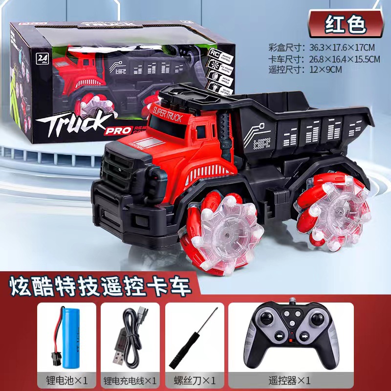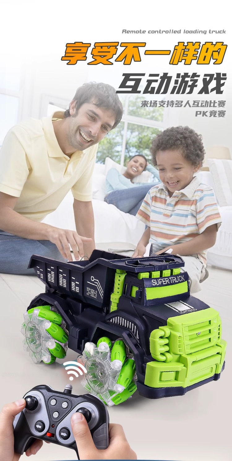 工厂儿童特技遥控工程车玩具2.4G无线运输翻斗车四驱漂移电动汽车