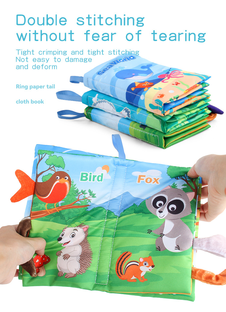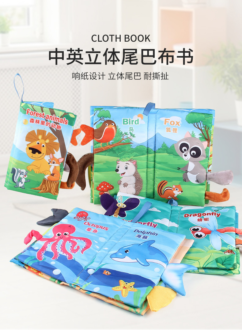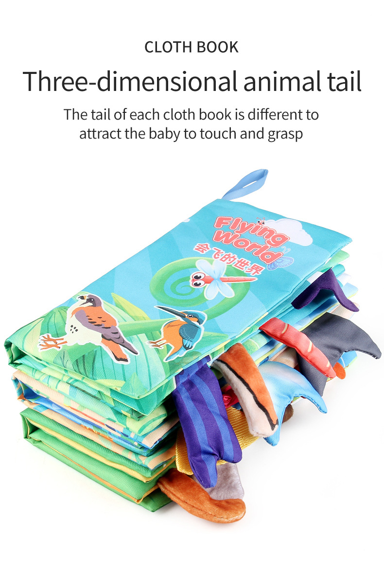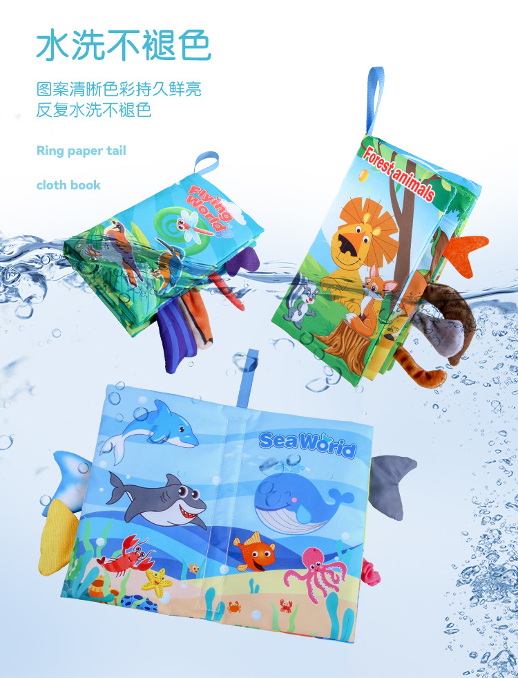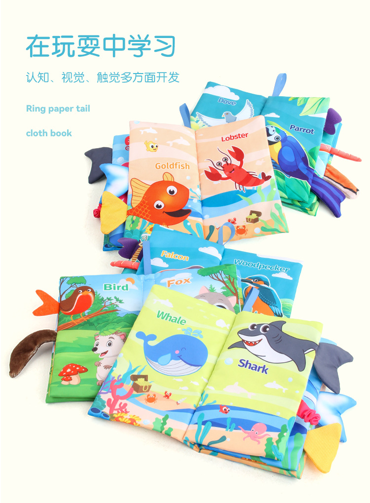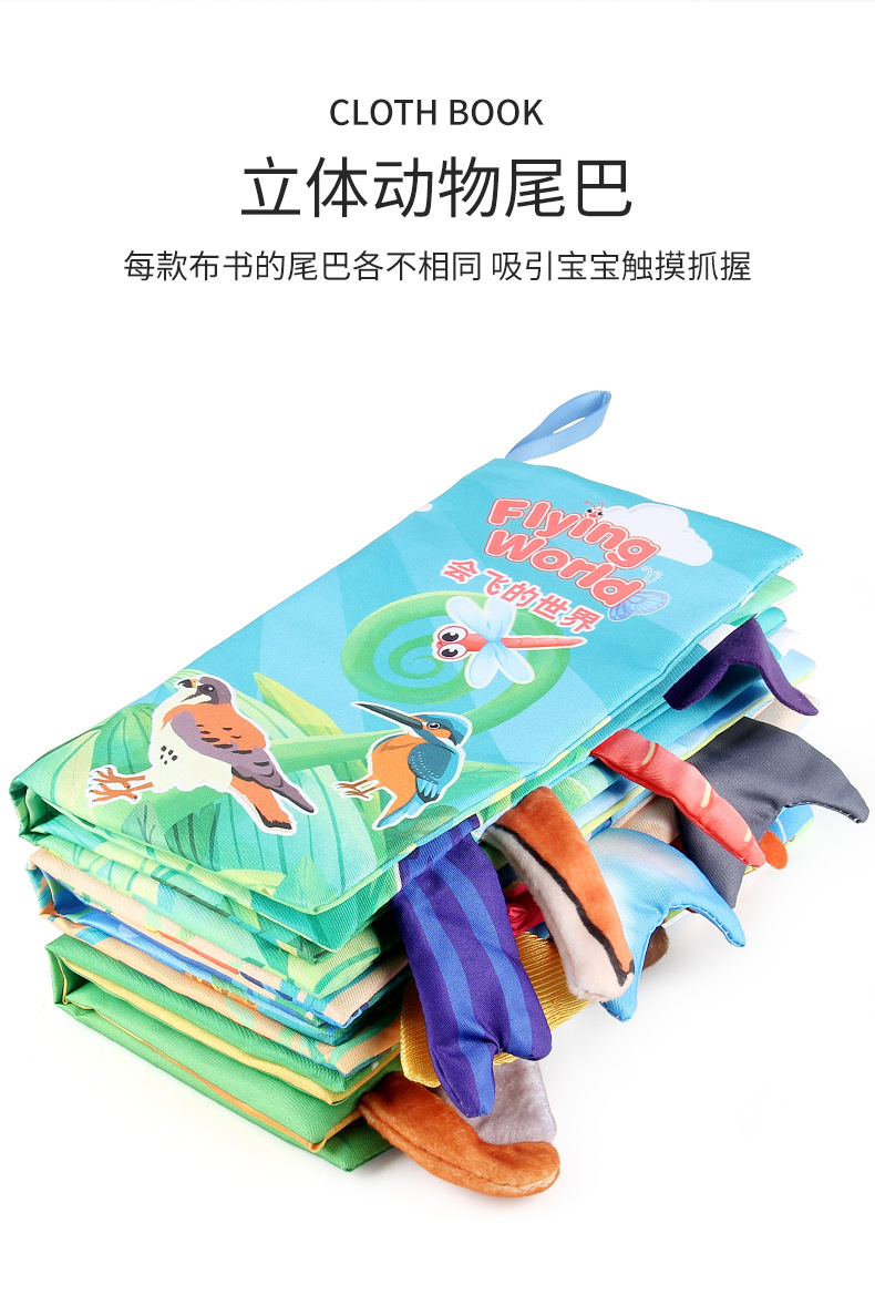 婴儿宝宝海陆空尾巴布书 海洋森林飞翔动物手掌书早教玩具4页8面