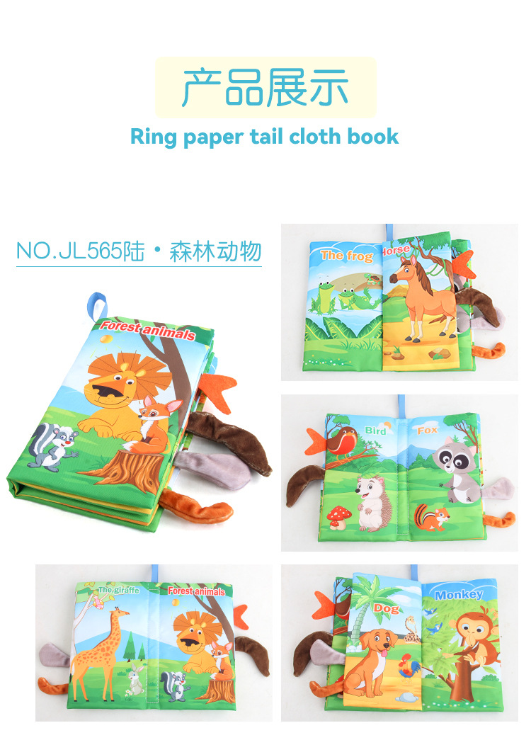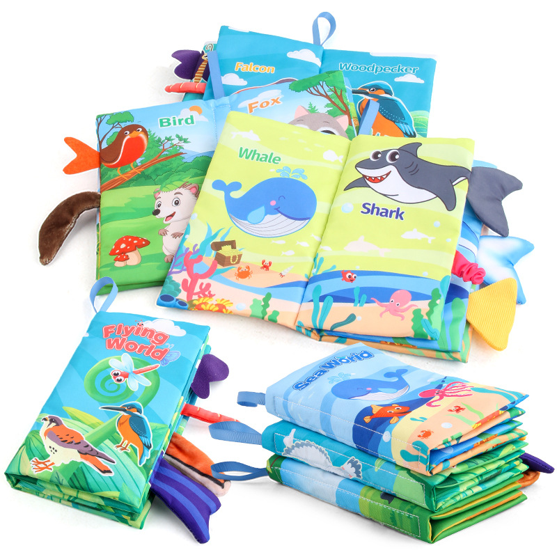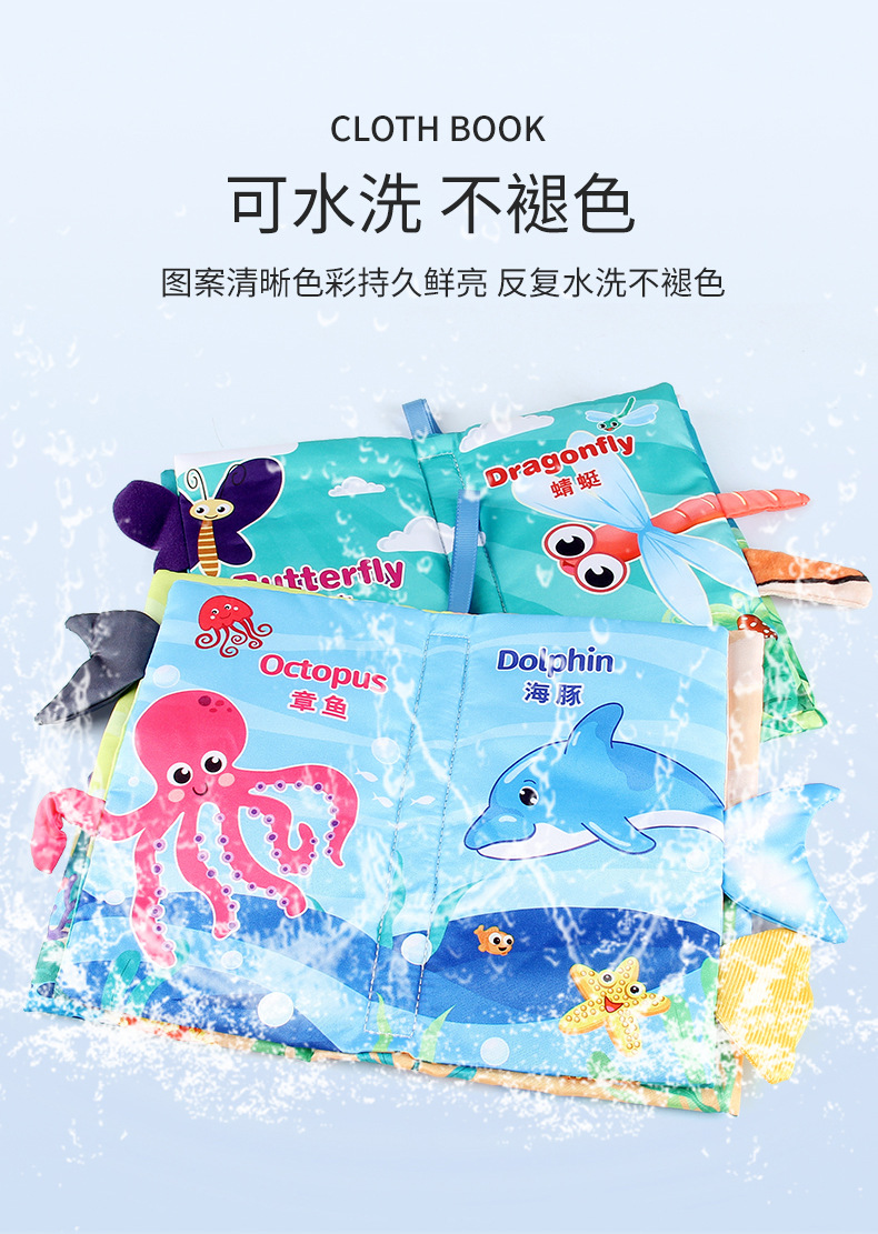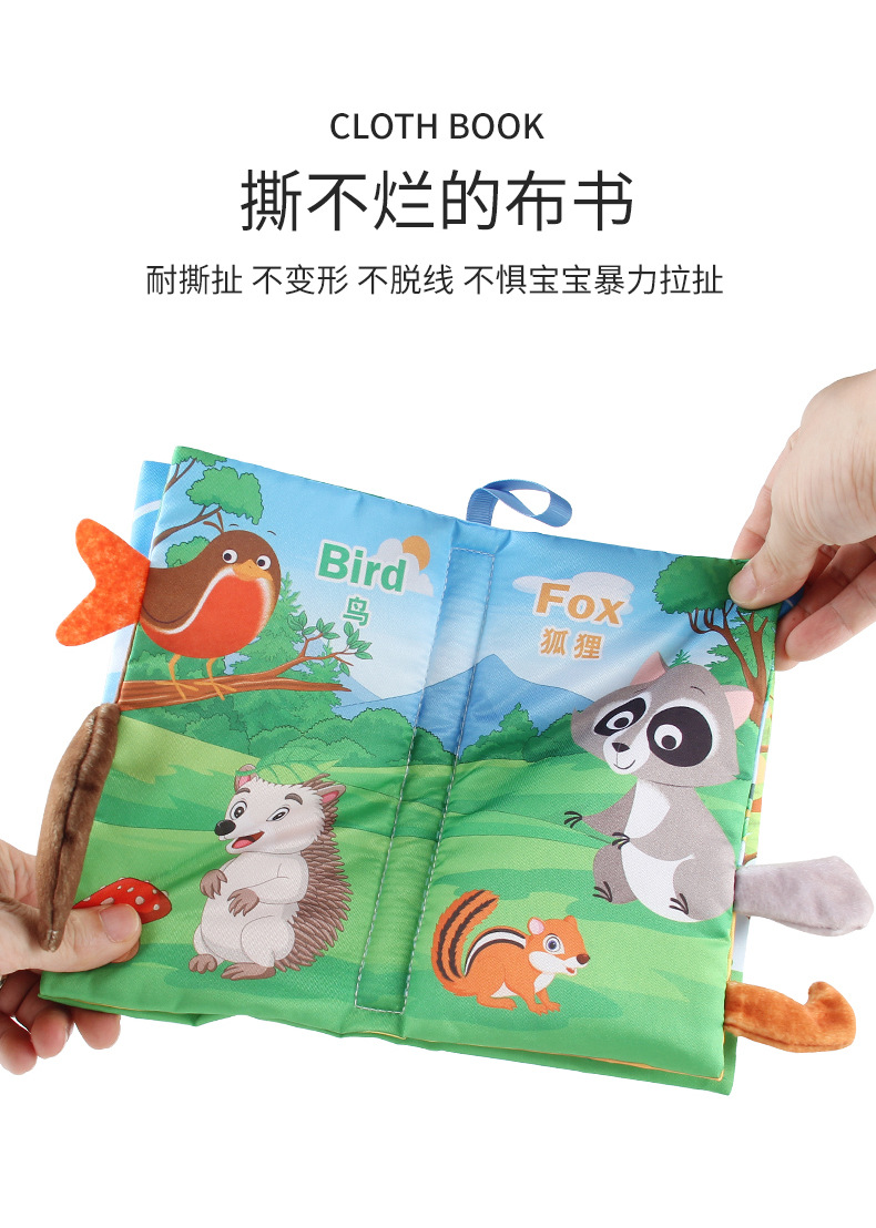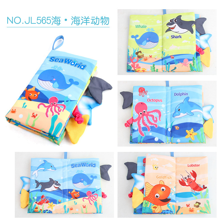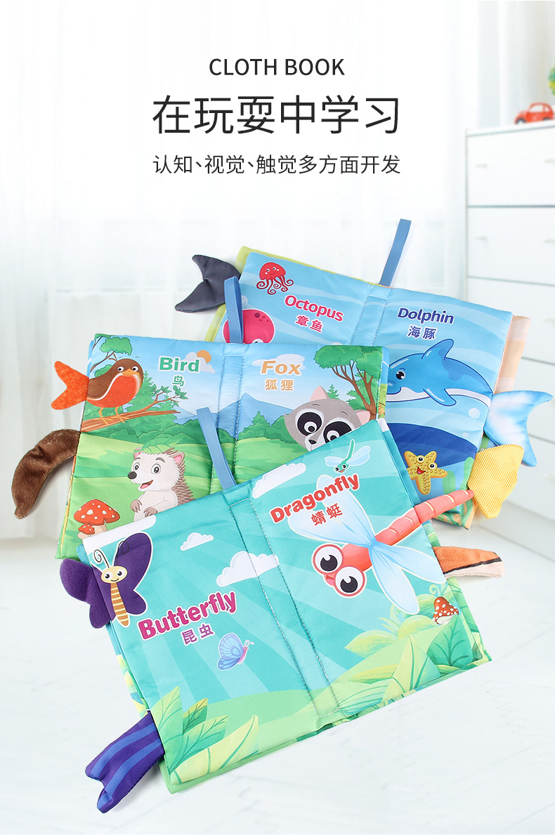 婴儿宝宝海陆空尾巴布书 海洋森林飞翔动物手掌书早教玩具4页8面