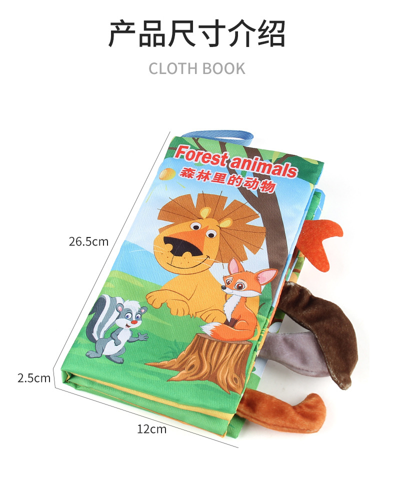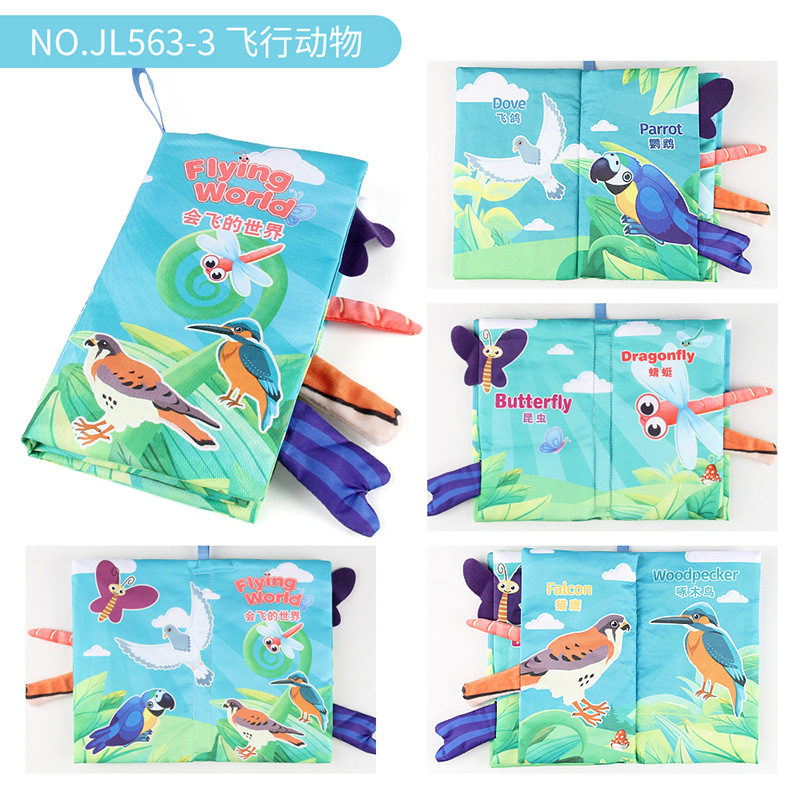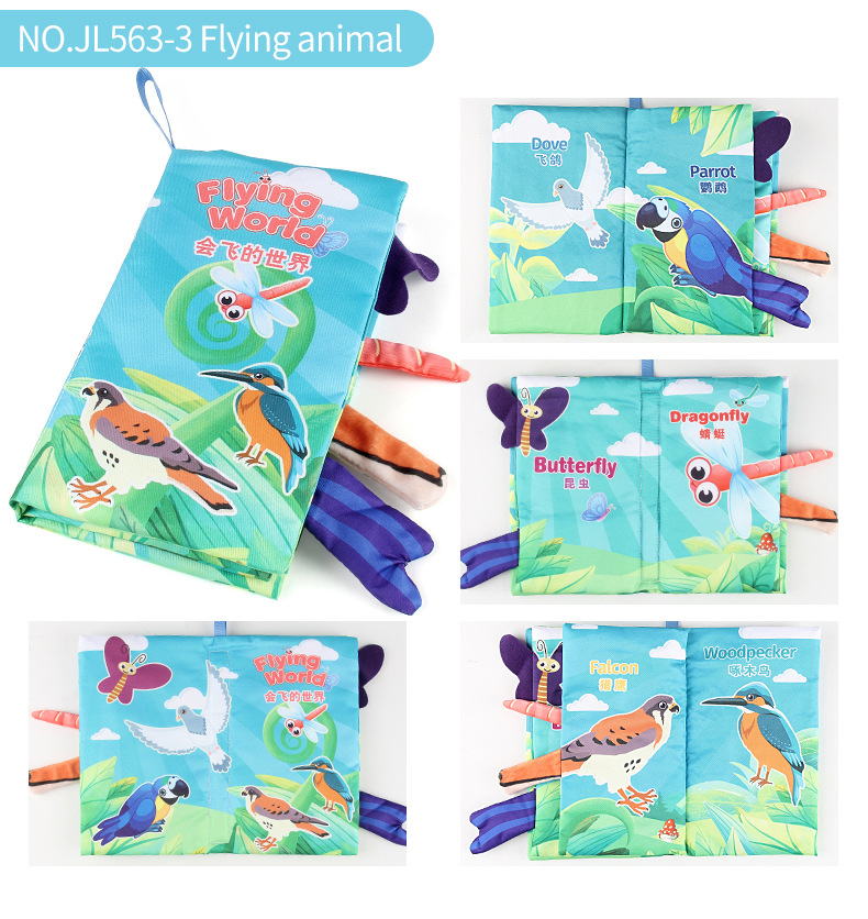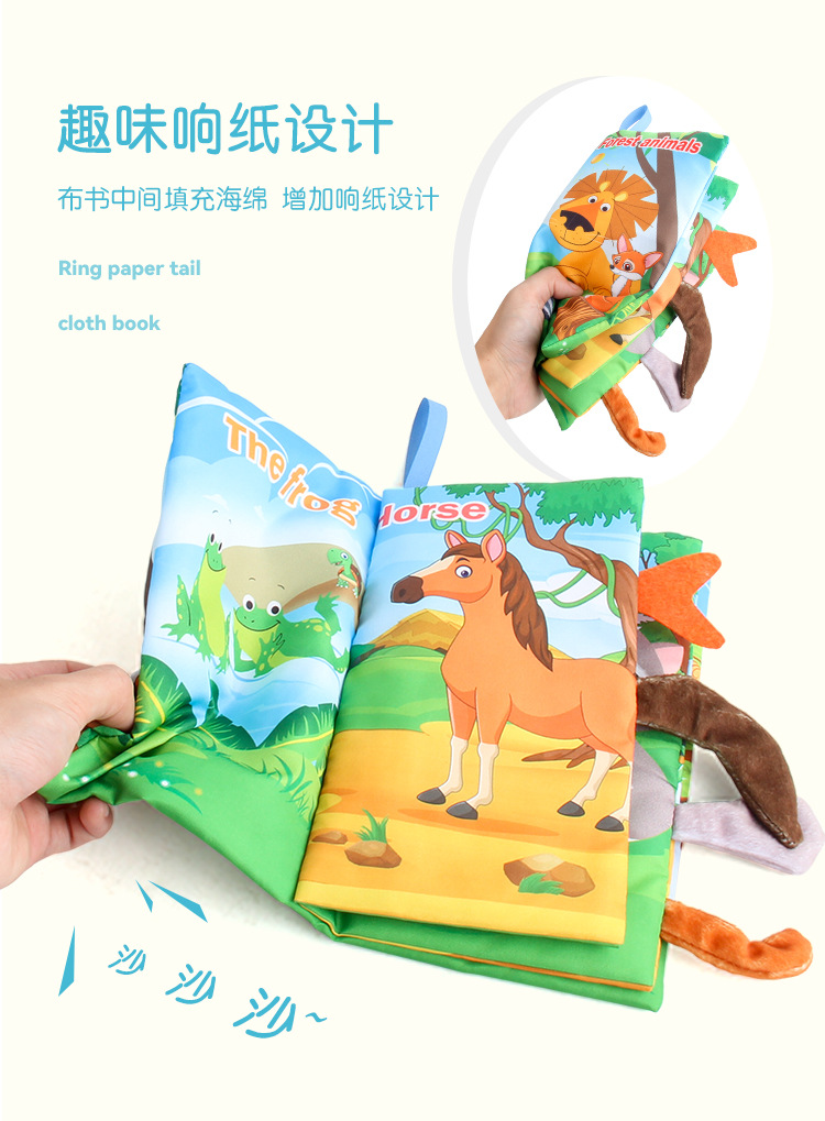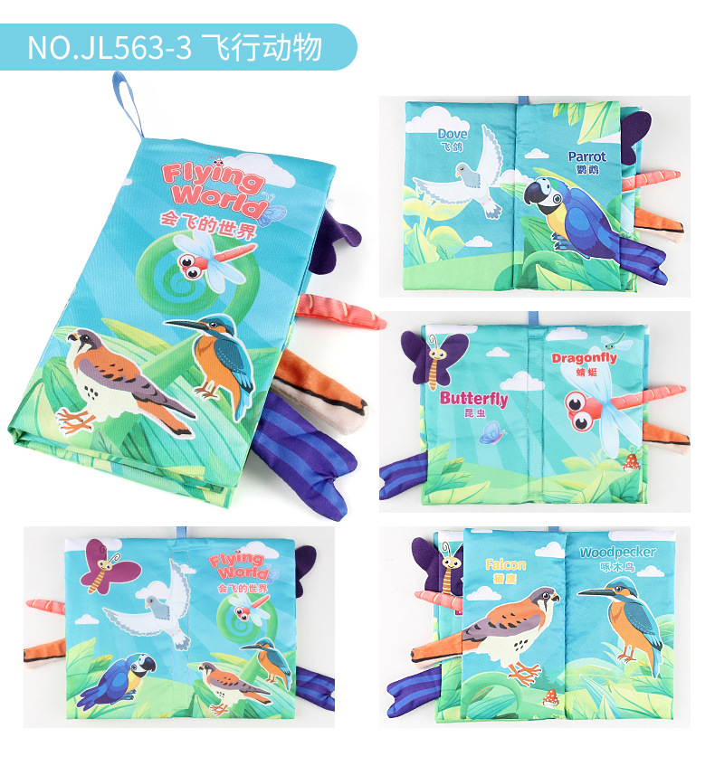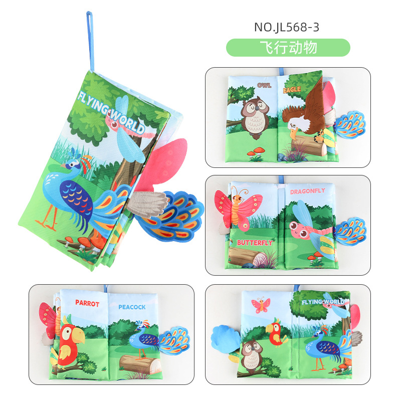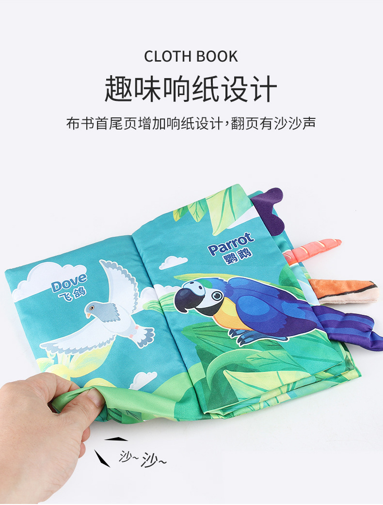 婴儿宝宝海陆空尾巴布书 海洋森林飞翔动物手掌书早教玩具4页8面