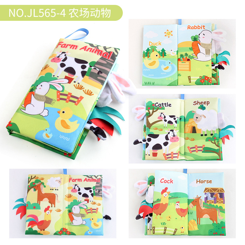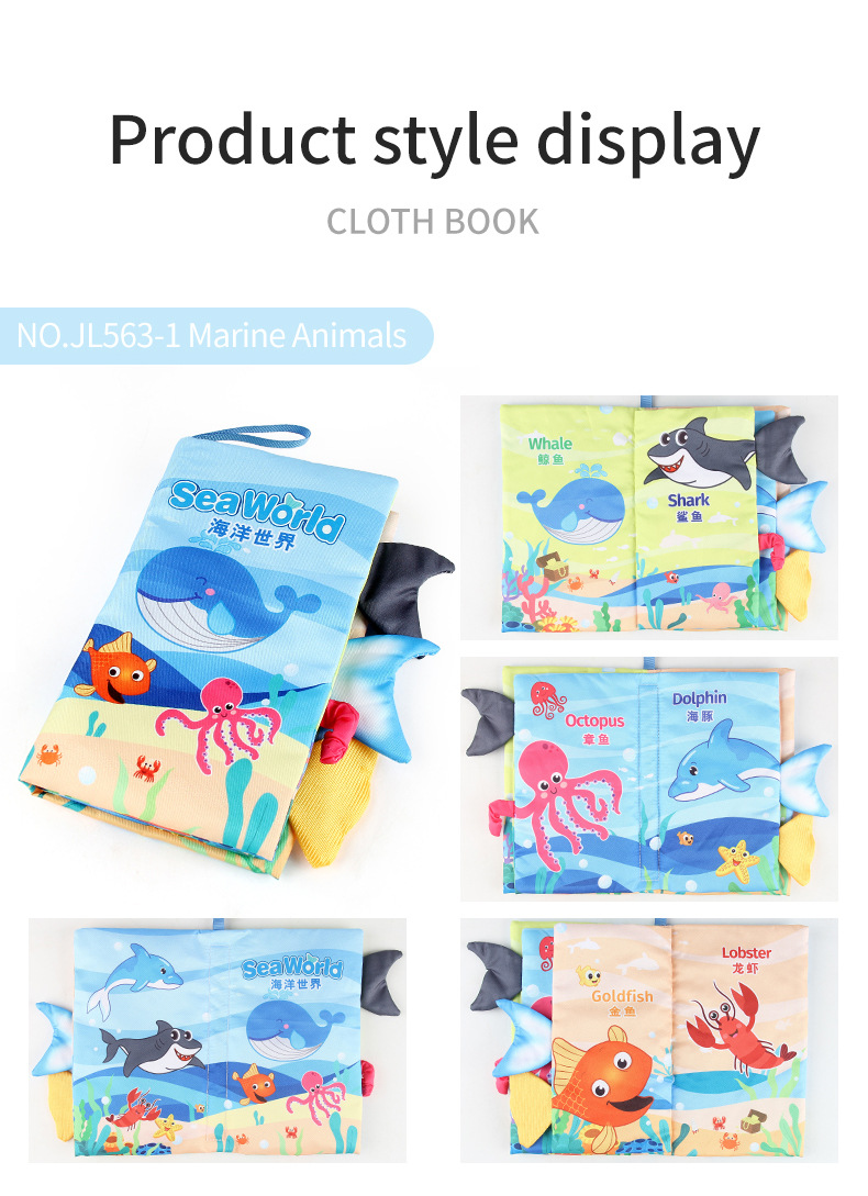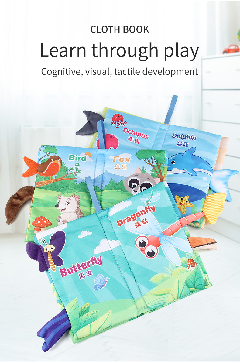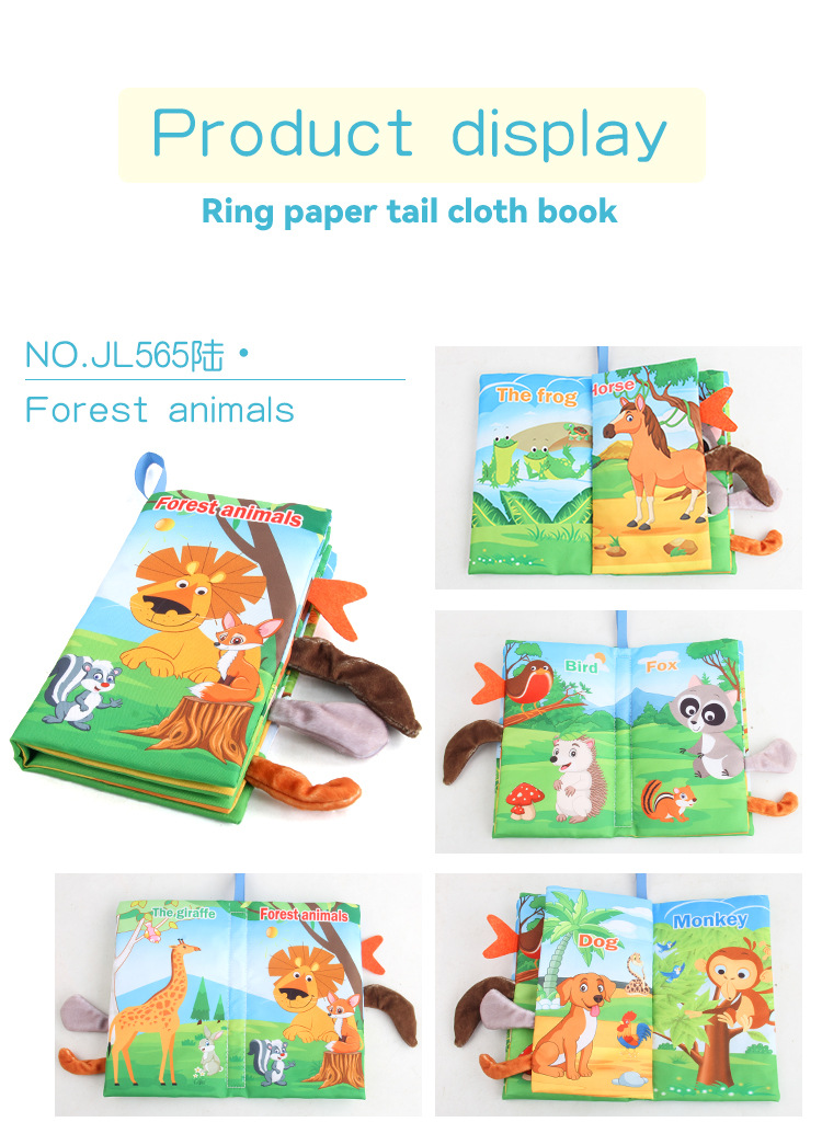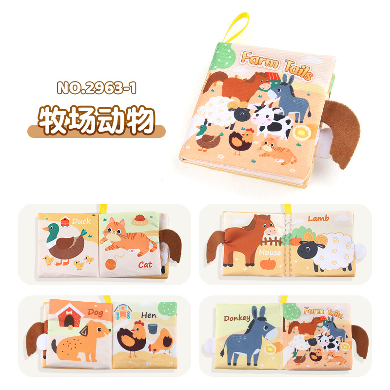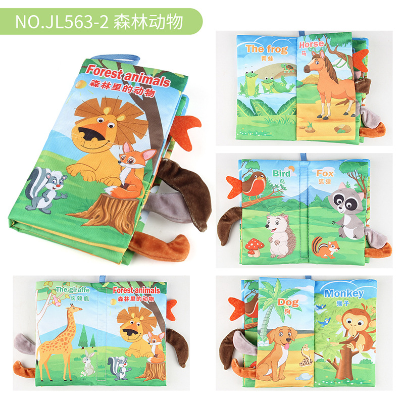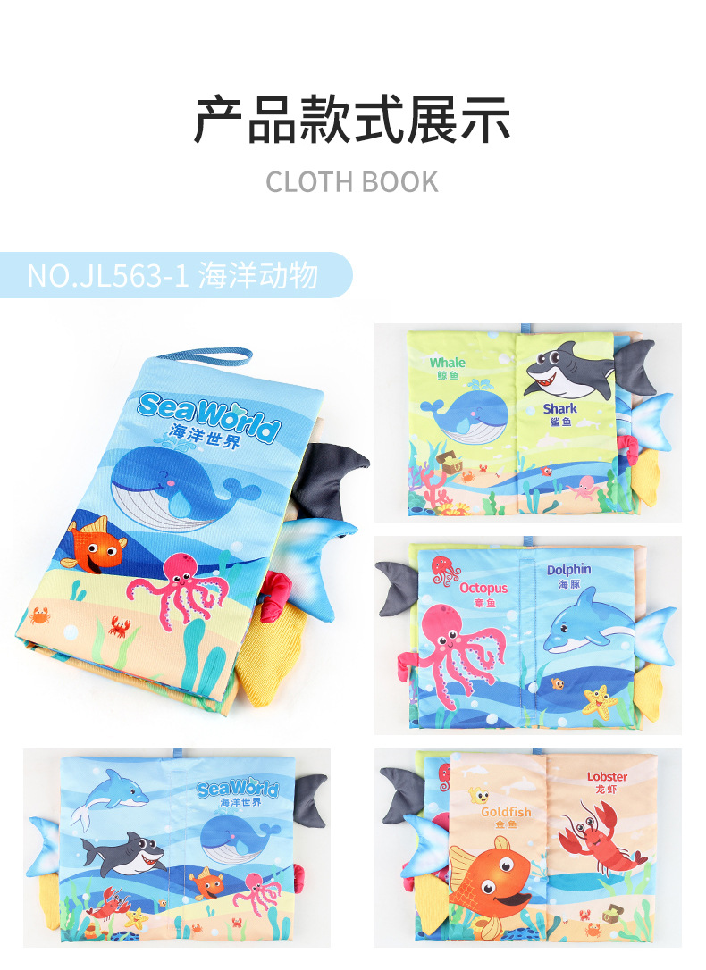 婴儿宝宝海陆空尾巴布书 海洋森林飞翔动物手掌书早教玩具4页8面