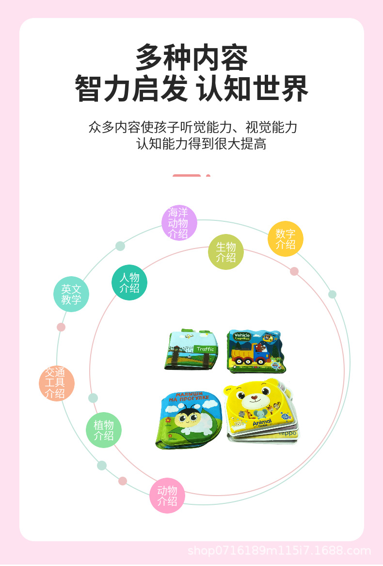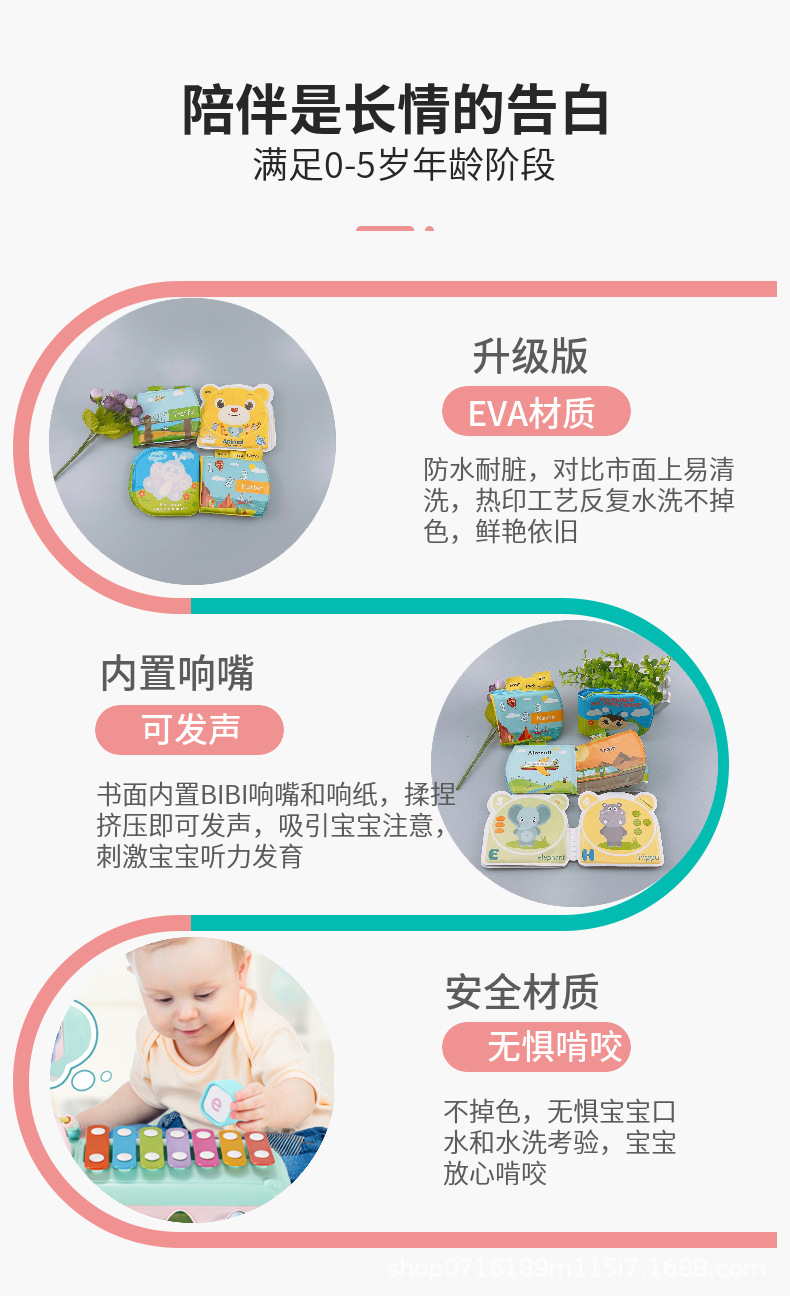 儿童早教书0-3岁宝宝启蒙防水卡通布书 撕不烂益智玩具变色洗澡书