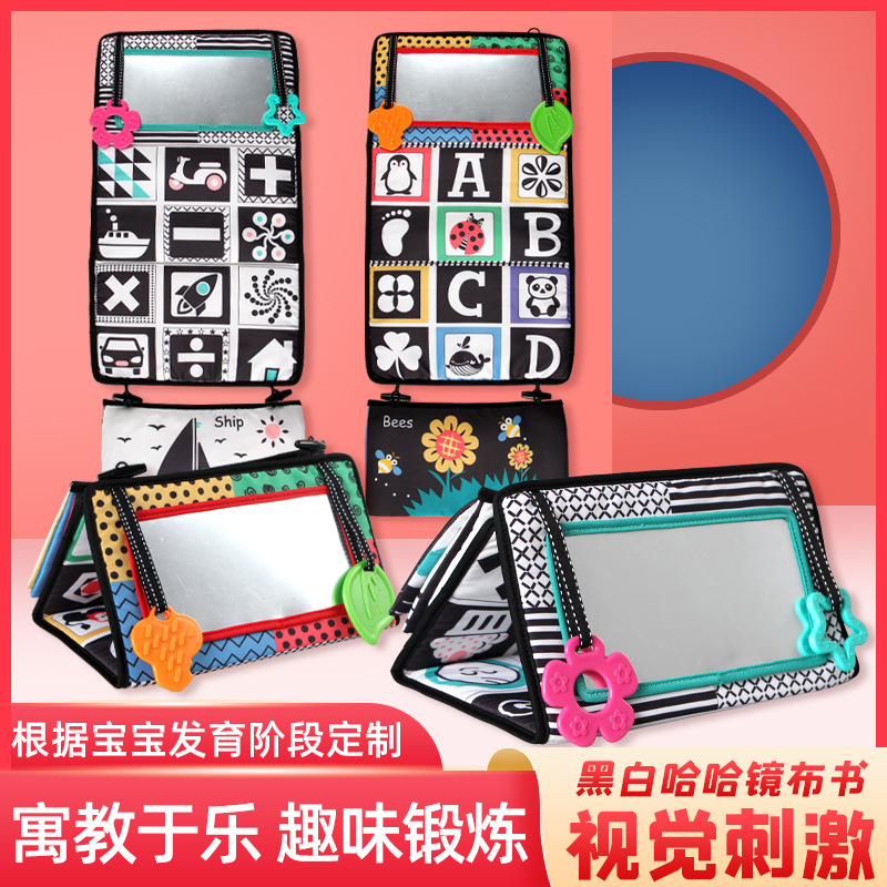 新款黑白二合一宝宝认知落地哈哈镜布书玩具视觉激发可折叠布书