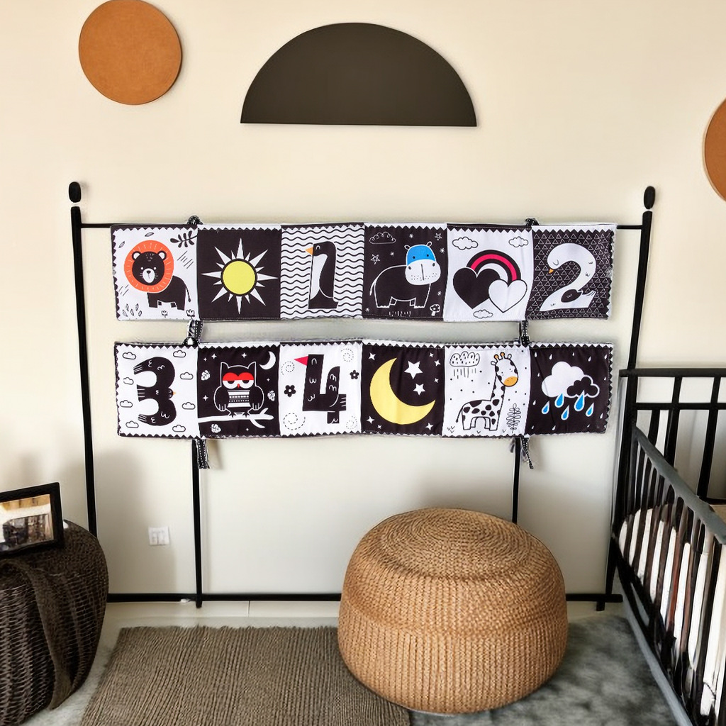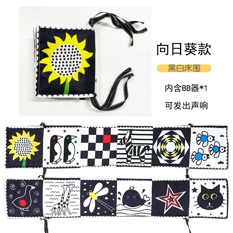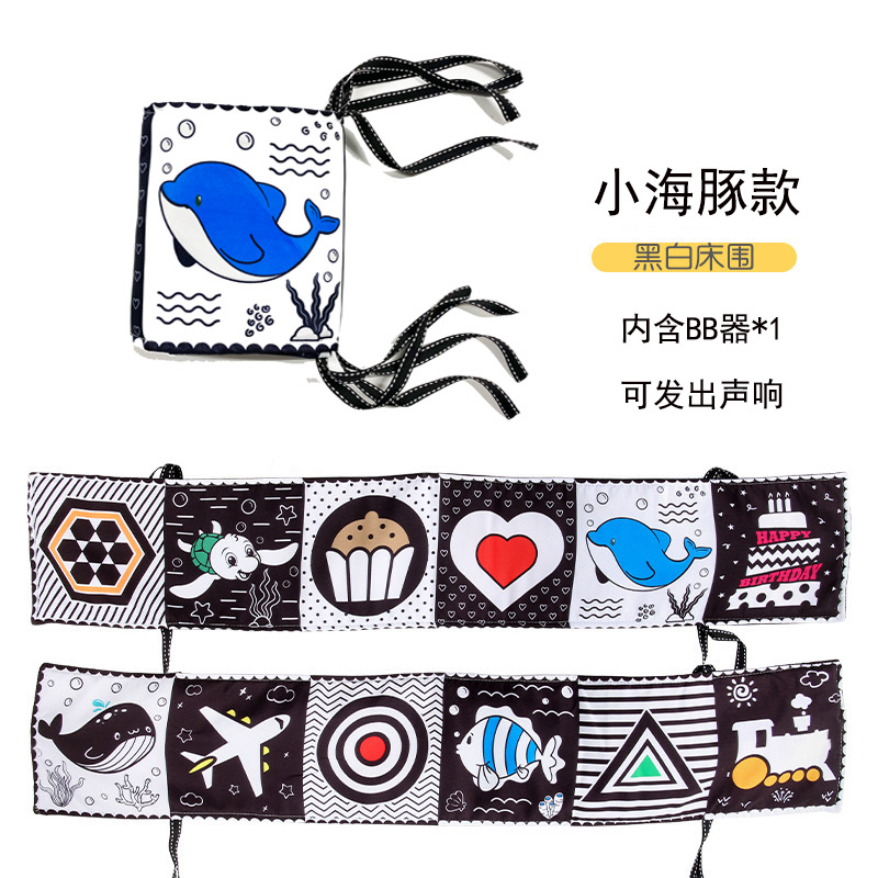 黑白双面婴儿认知床围可撕扯可水洗感知布书保护宝宝卡通厂家直供