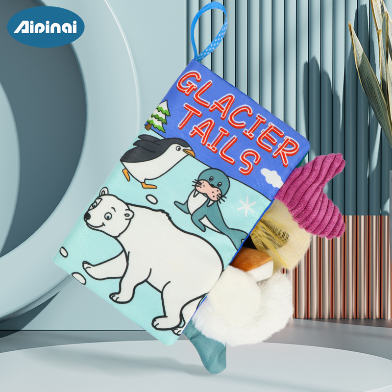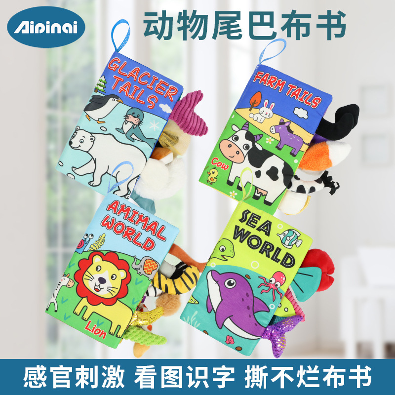 aipinqi婴儿动物尾巴布书益智玩具书撕不烂宝宝布书响纸早教玩具