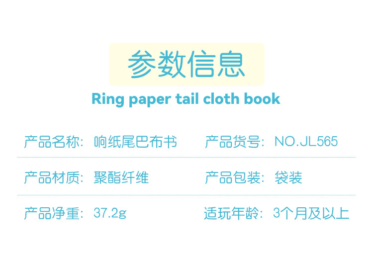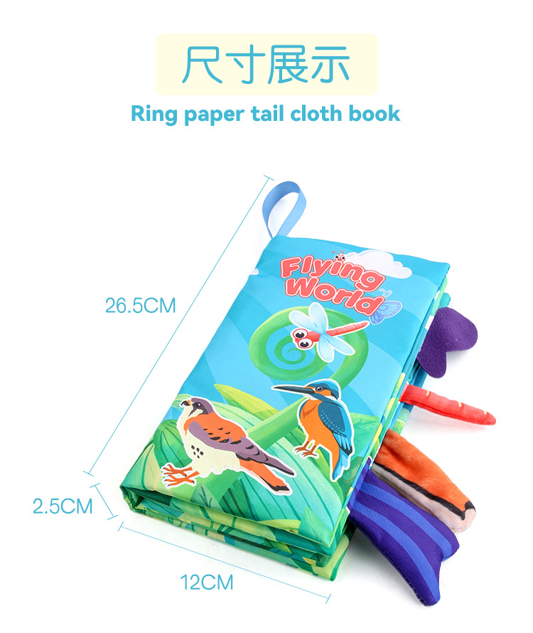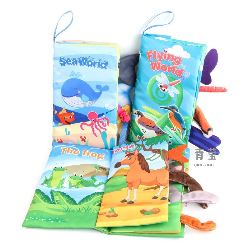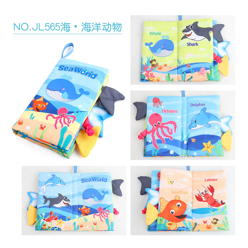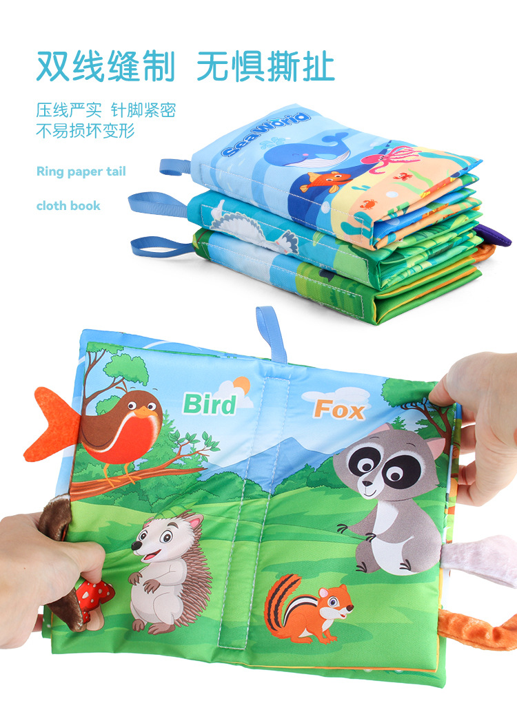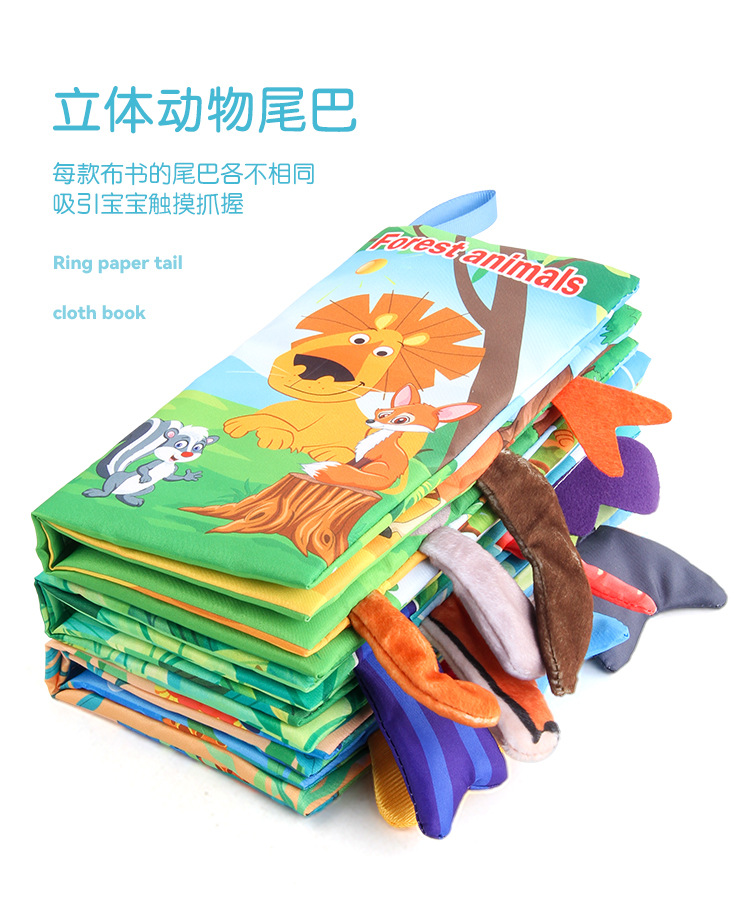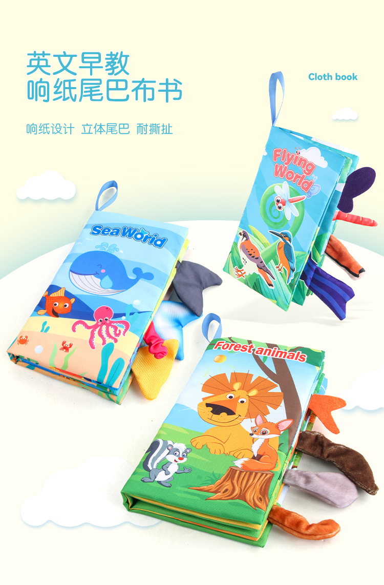 早教婴幼儿英文海洋动物尾巴布书 撕不烂带响纸森林动物尾巴布书