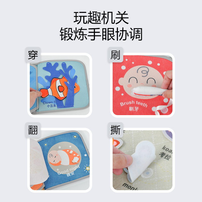 婴儿布书可啃咬撕撕书早教安静书宝宝魔术贴撕不烂1益智安抚玩具