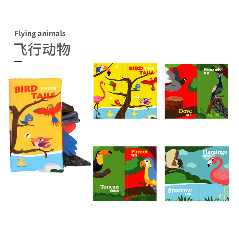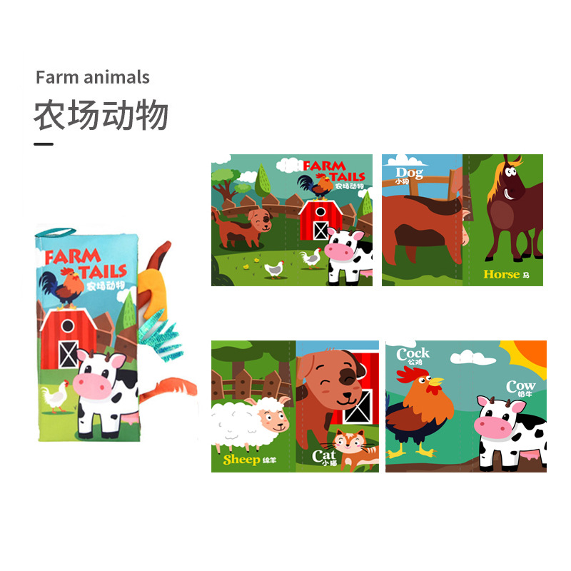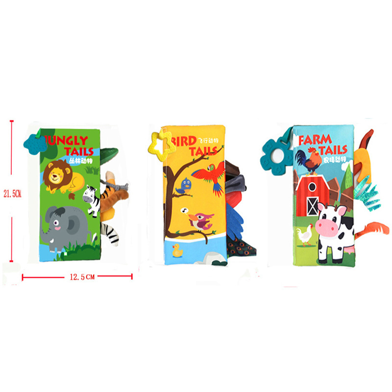 新款儿童响纸立体布书 撕不烂可咬动物尾巴布书 婴幼儿早教布书