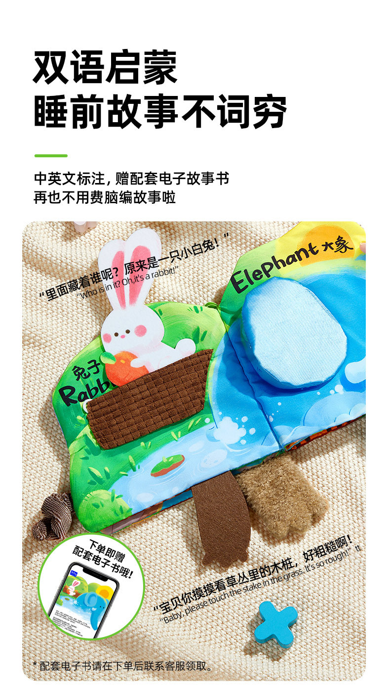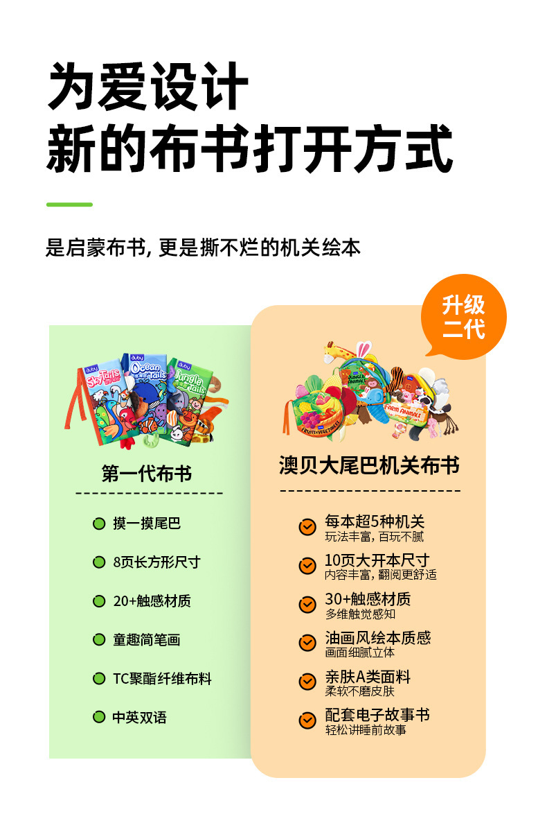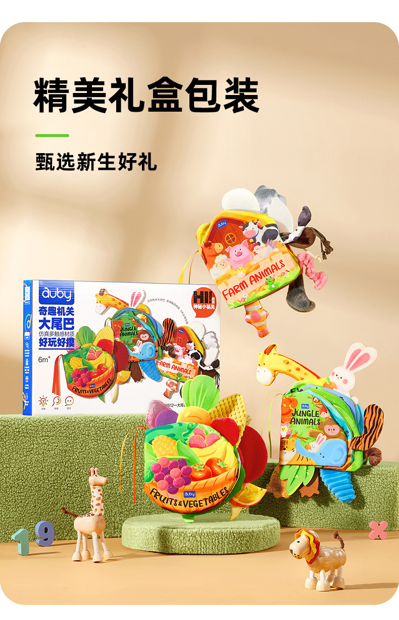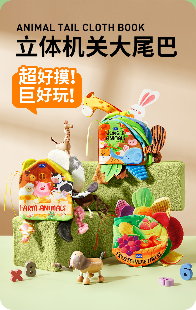 奥贝大尾巴立体机关布书0-3岁婴幼儿早教启蒙触摸书宝宝益智玩具