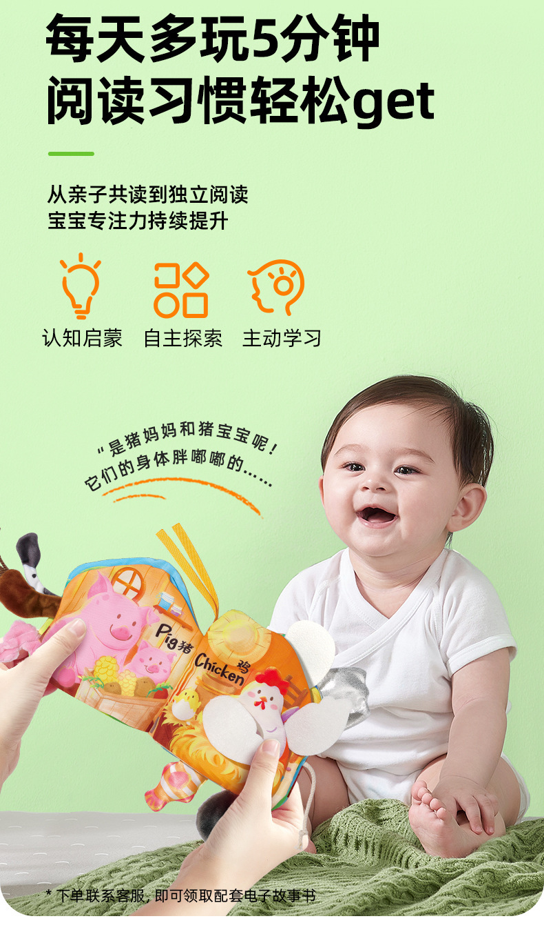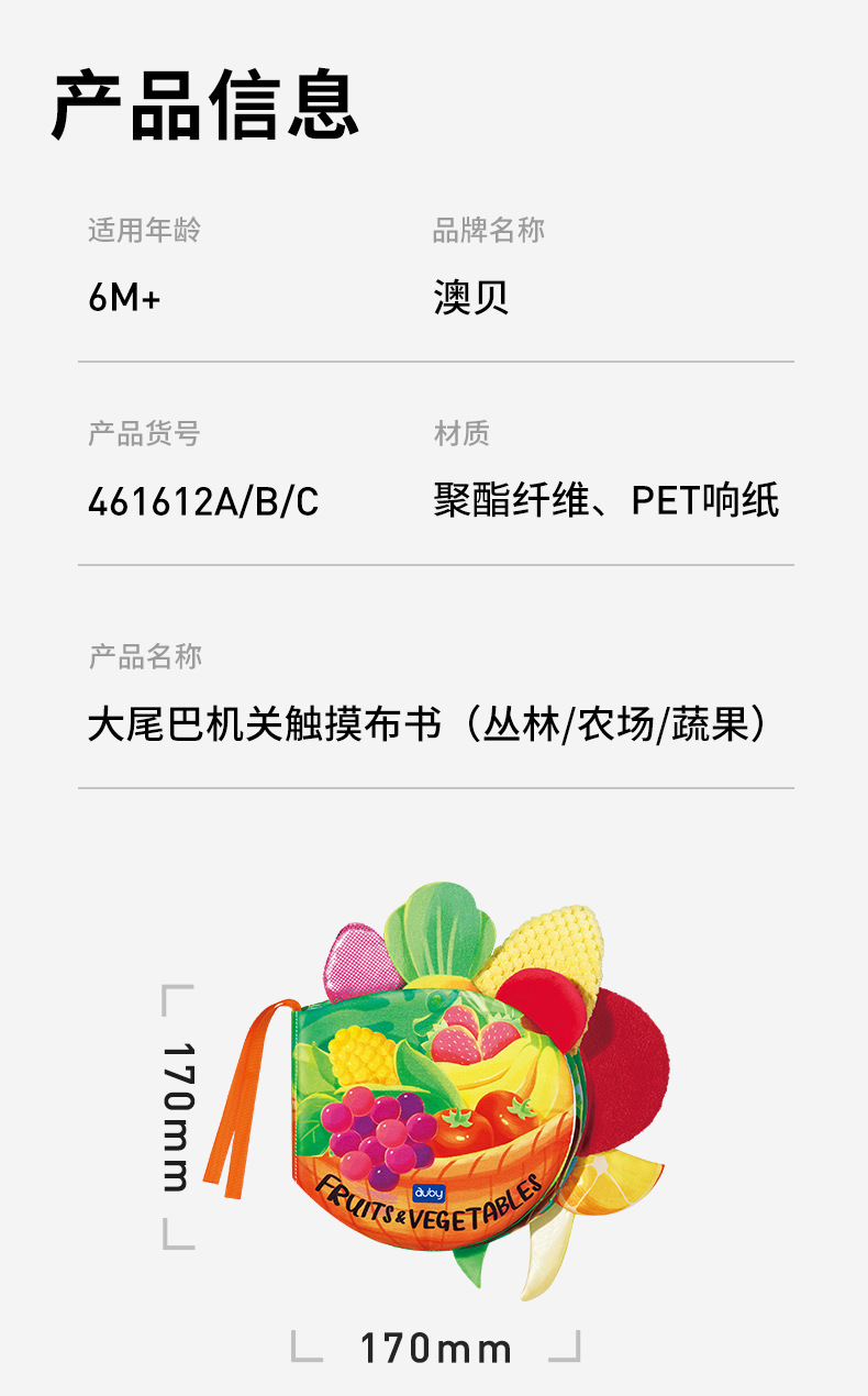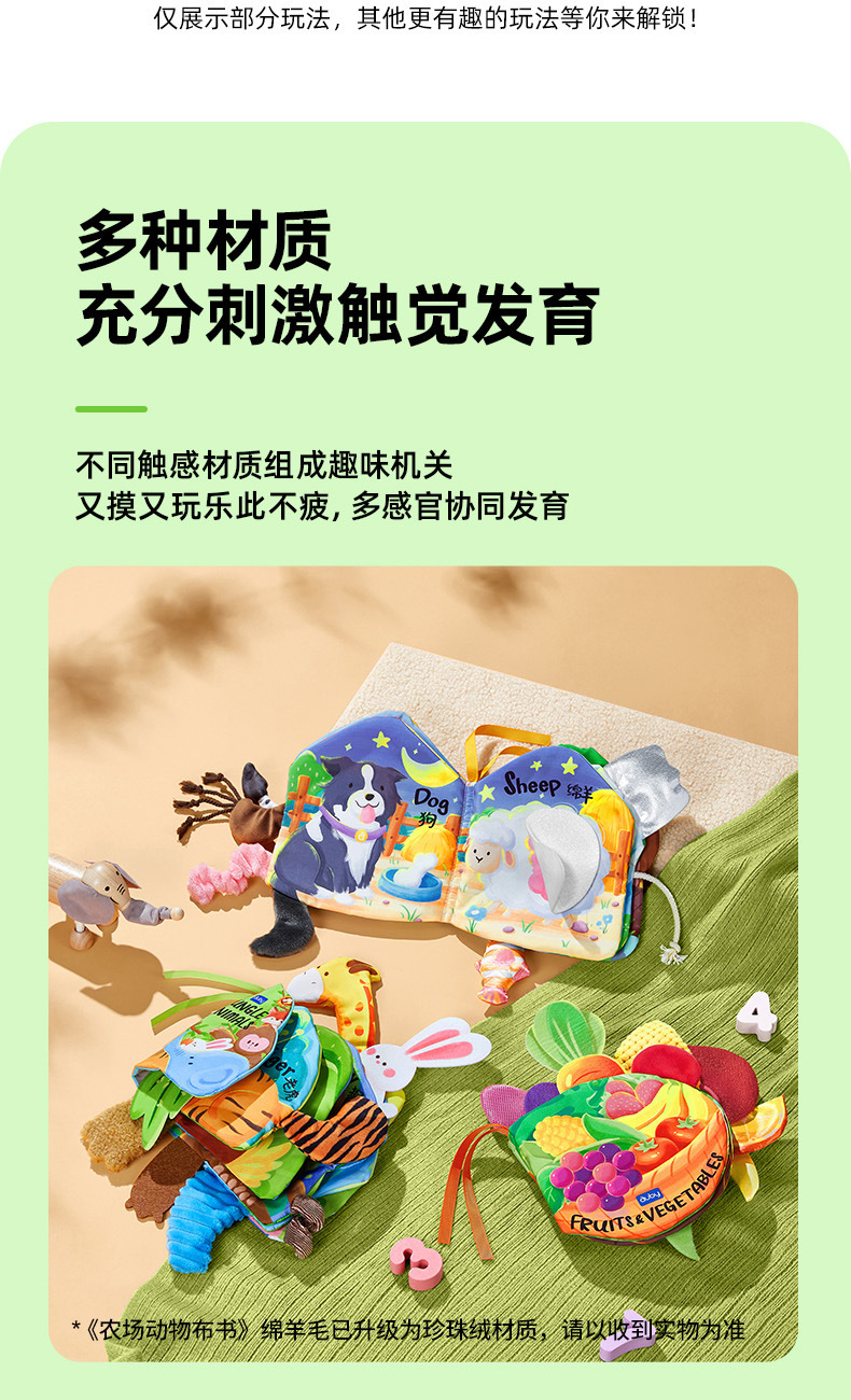 奥贝大尾巴立体机关布书0-3岁婴幼儿早教启蒙触摸书宝宝益智玩具
