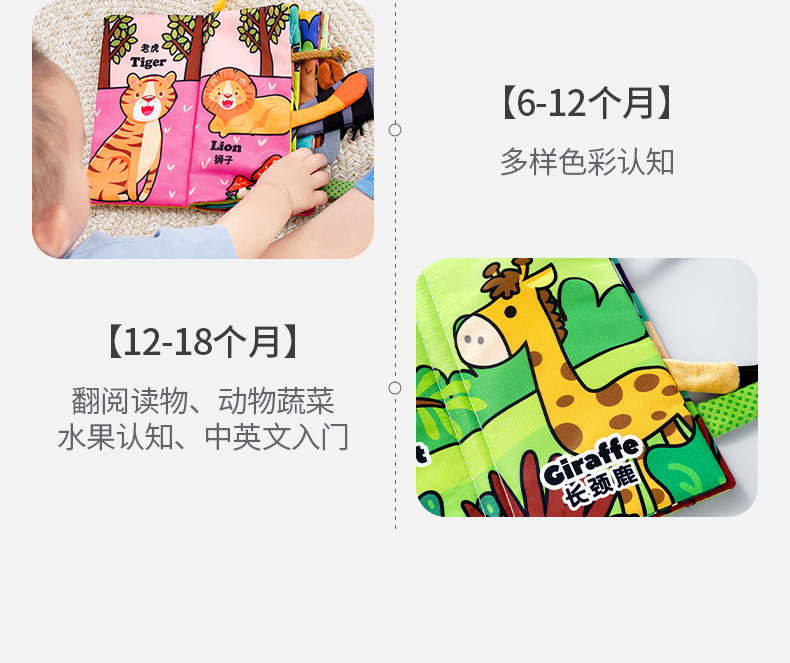 布书早教婴儿撕不烂可啃咬6个月宝宝立体尾巴可撕手撕书3益智玩具