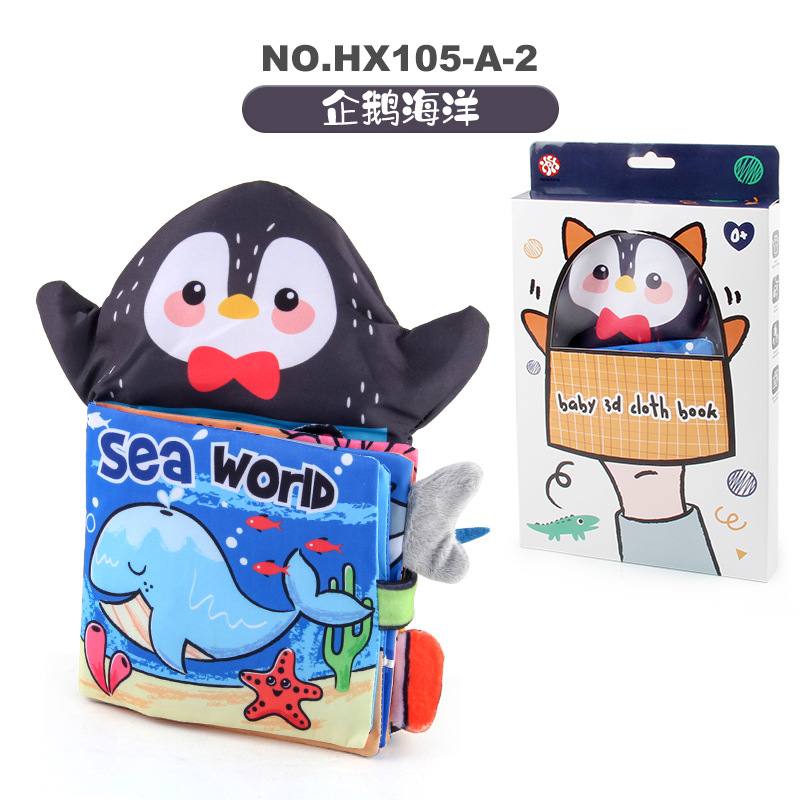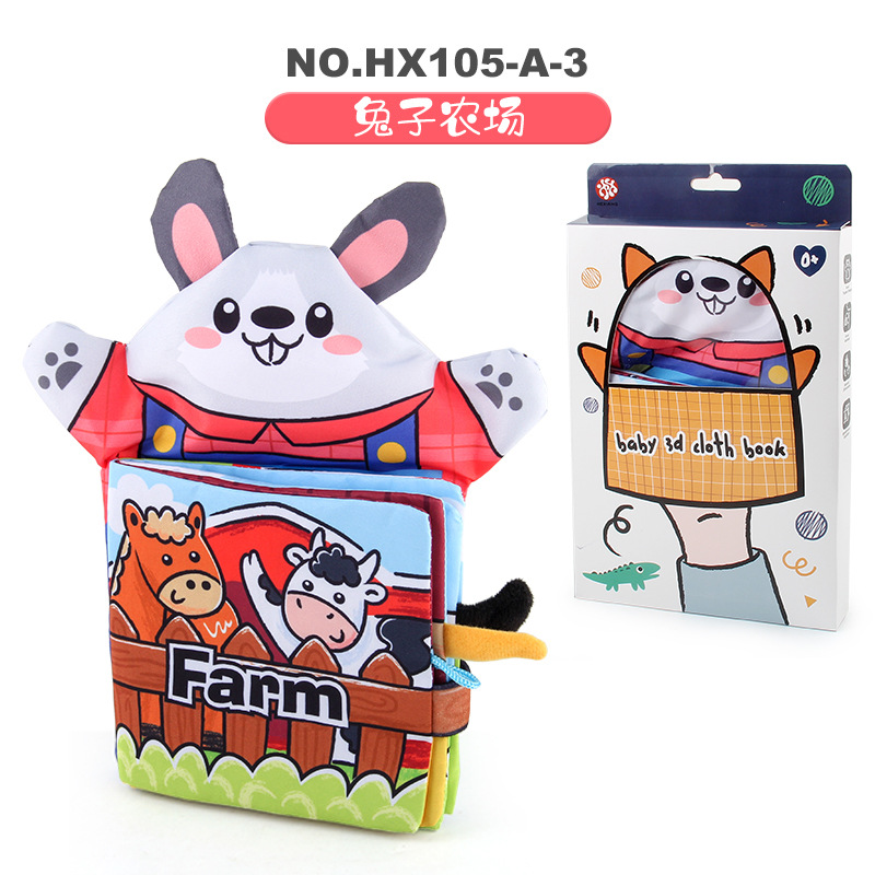 跨境婴儿早教响纸布书 二合一立体手偶布书 撕不烂动物尾巴宝宝书