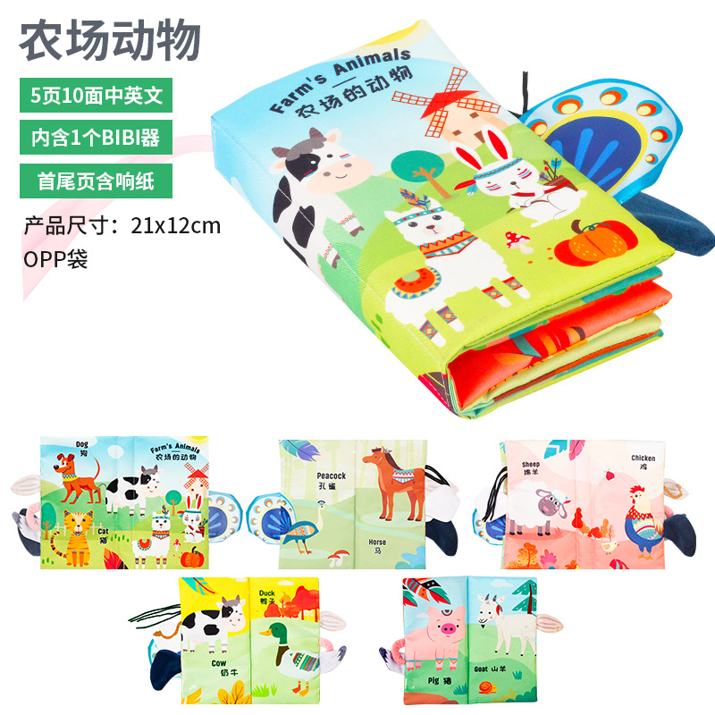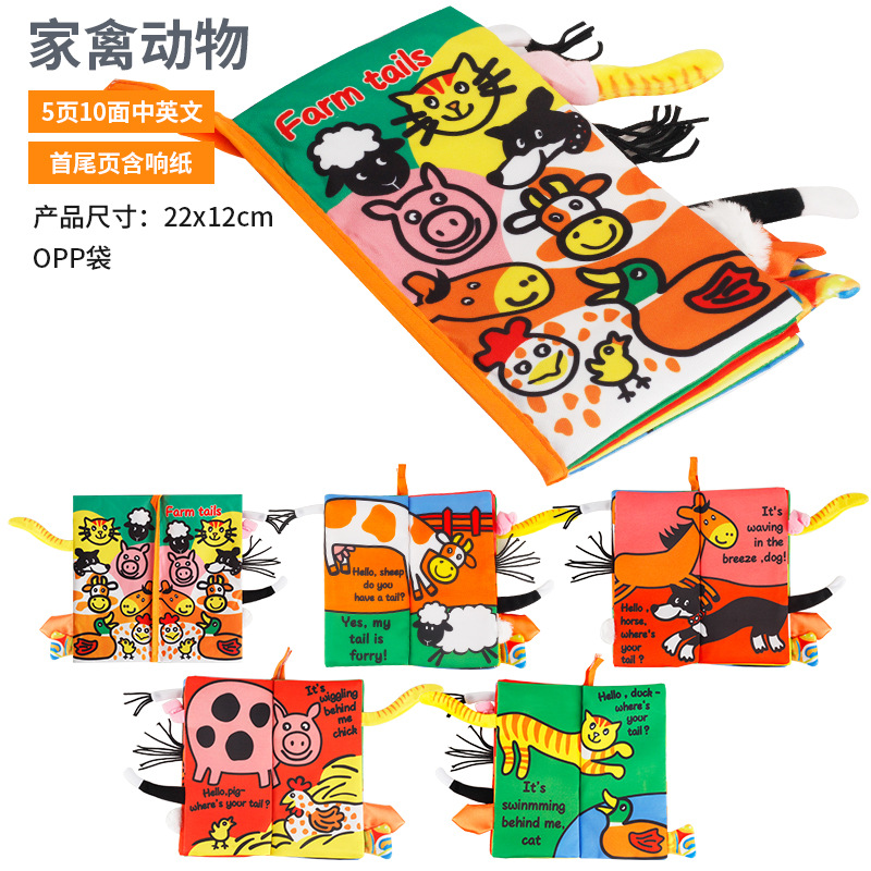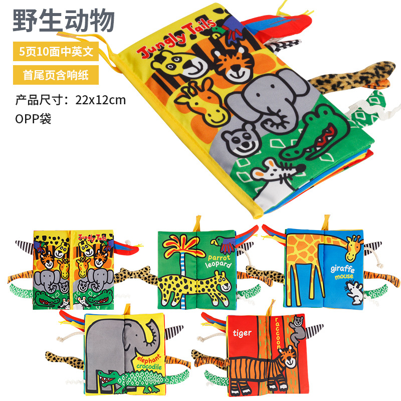 益智启蒙立体动物尾巴布书 可咬撕不烂的早教书宝宝布书婴儿玩具