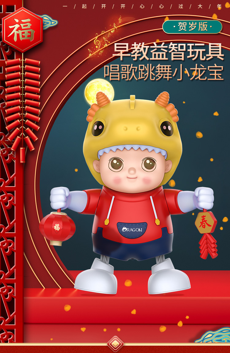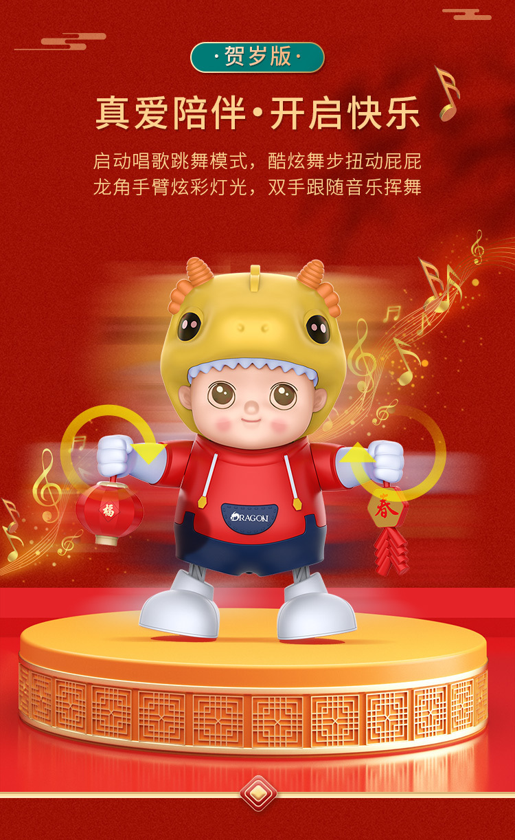 儿童电动跳舞小龙人唱歌跳舞宝宝抬头训练玩具婴幼儿抖音热卖网红