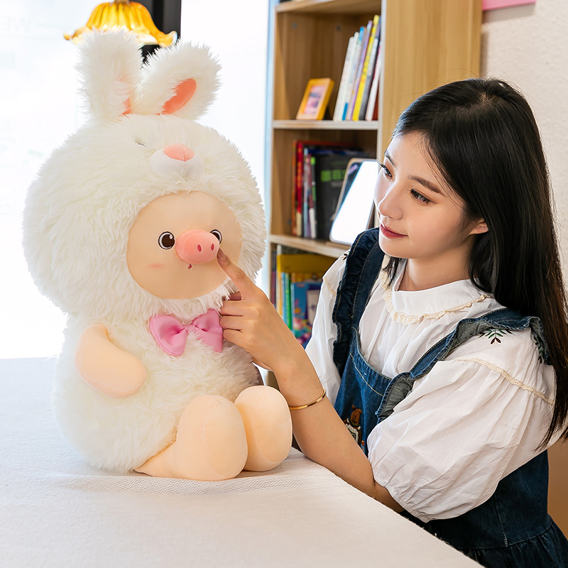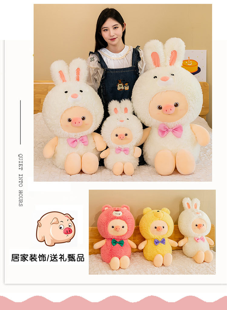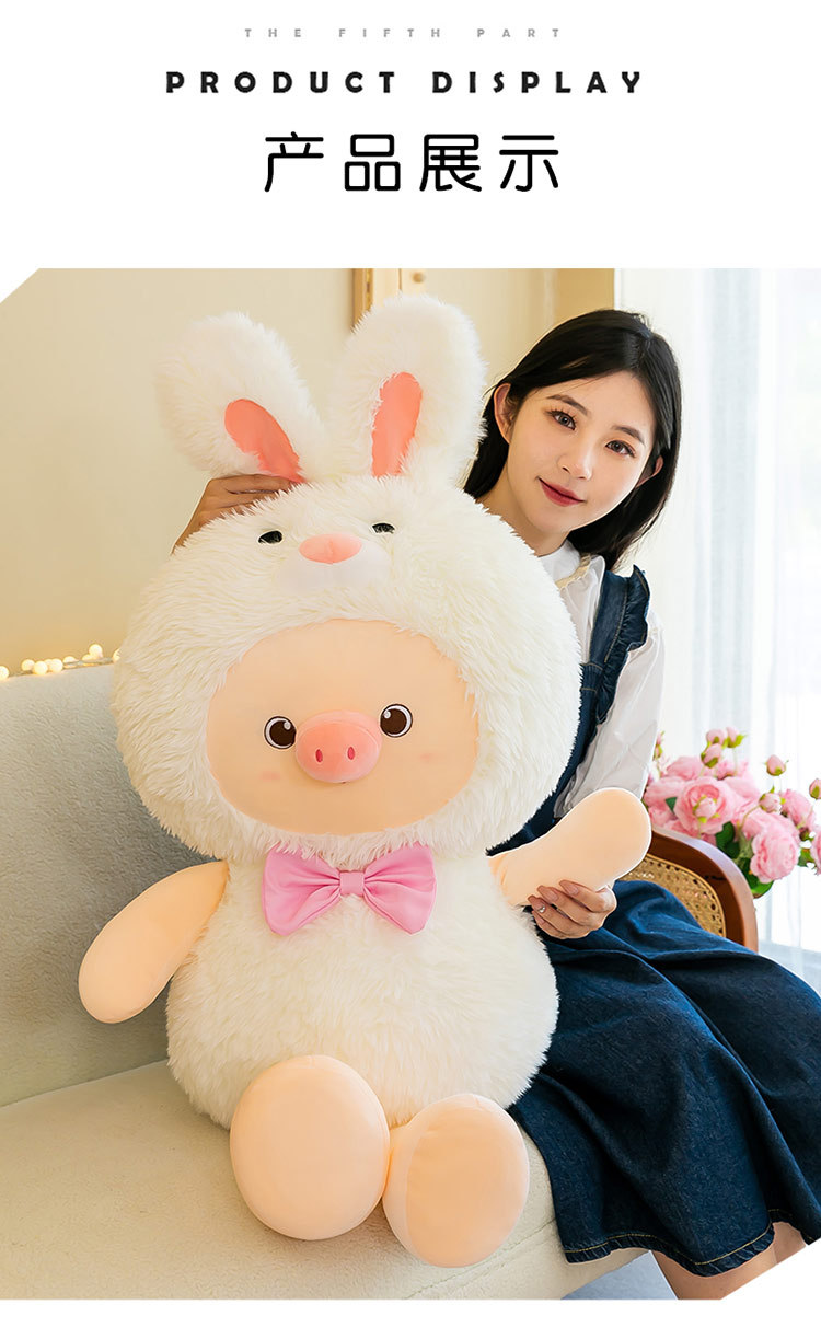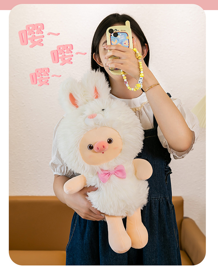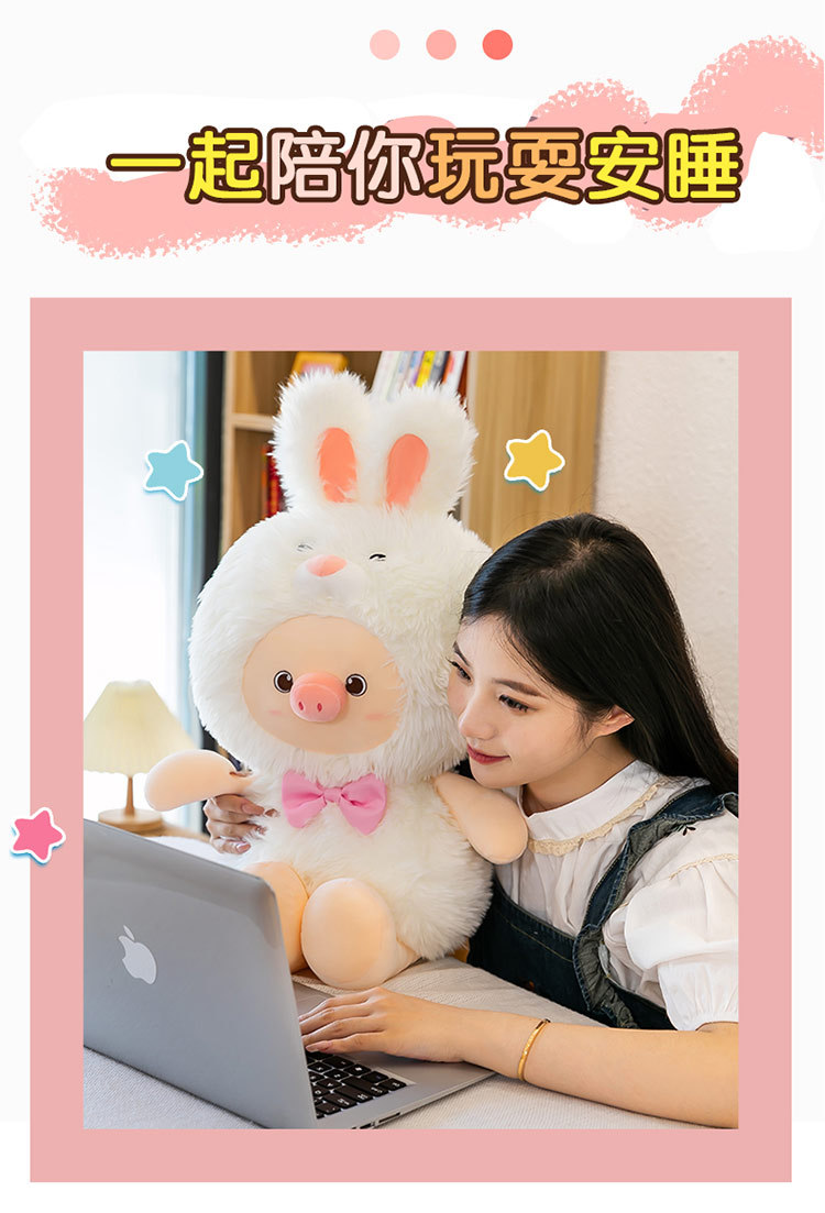 变身小白兔毛绒玩具创意小猪长毛超软抱枕布娃娃床上抱着睡觉玩偶