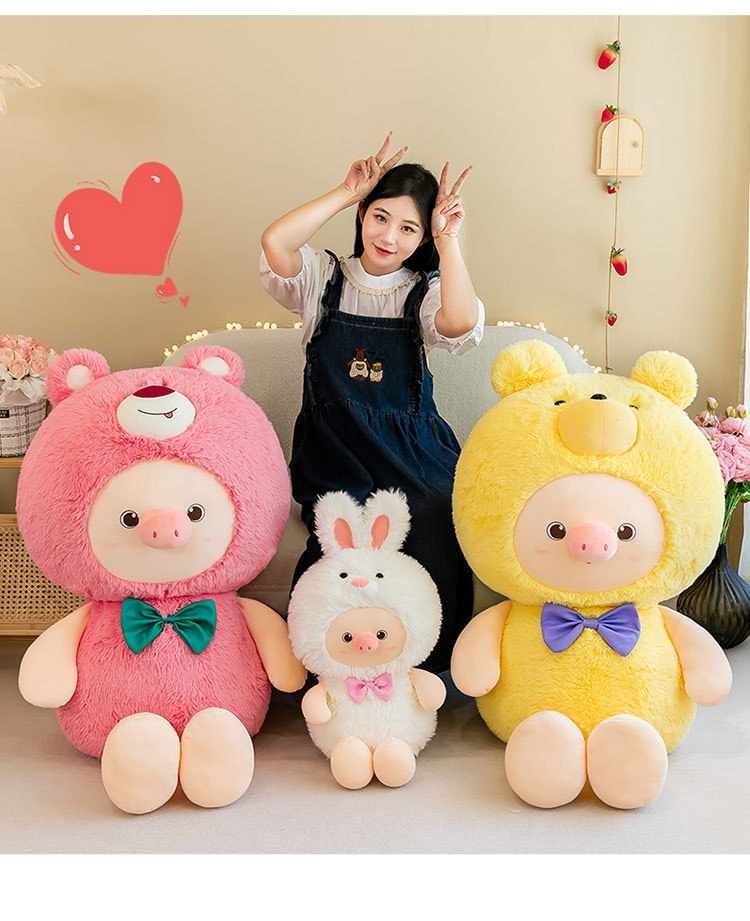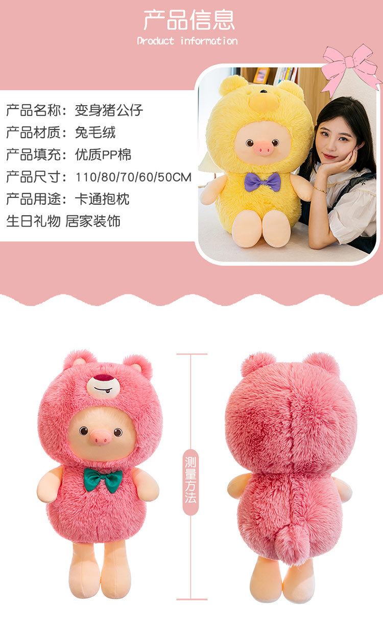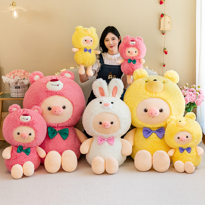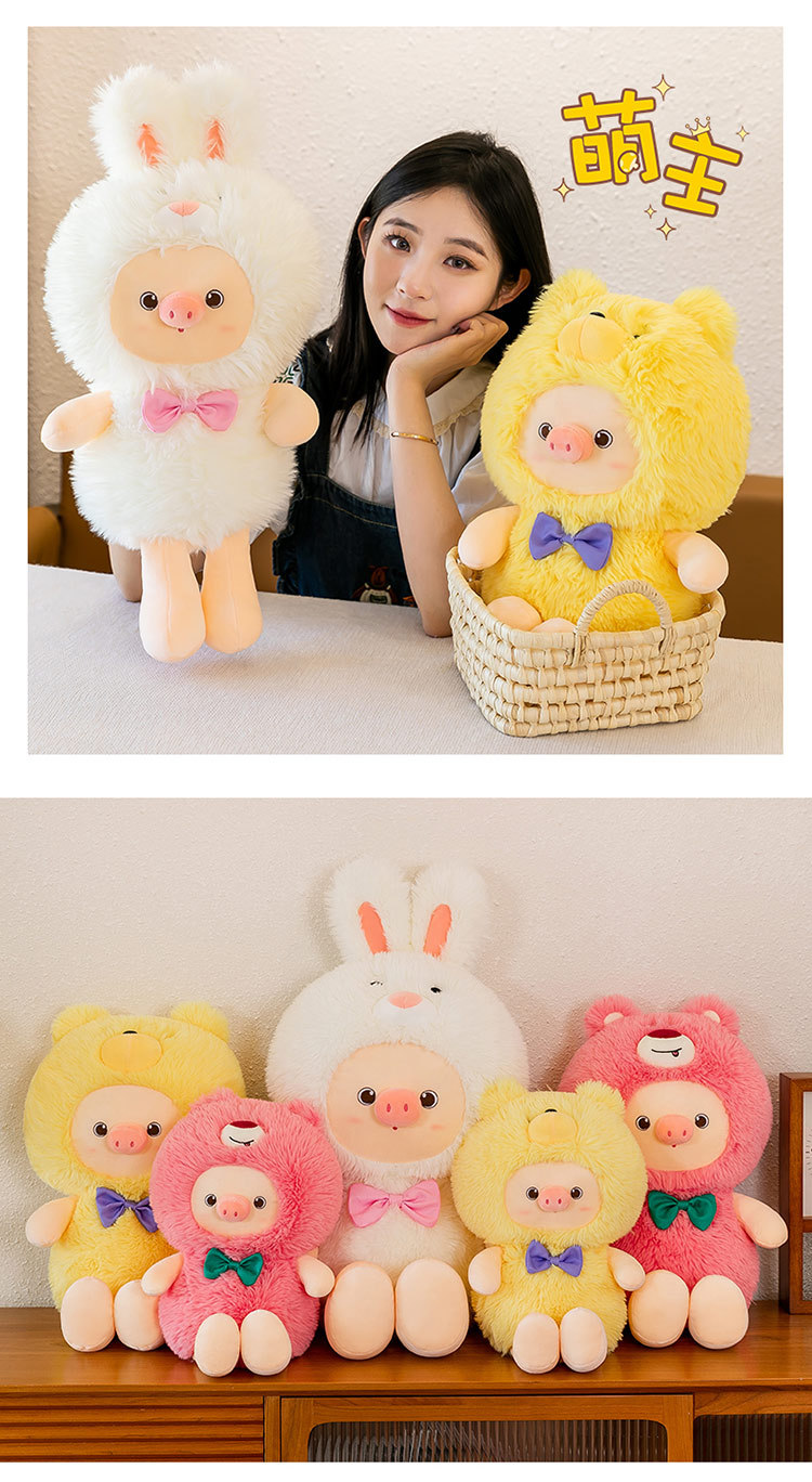 变身小白兔毛绒玩具创意小猪长毛超软抱枕布娃娃床上抱着睡觉玩偶