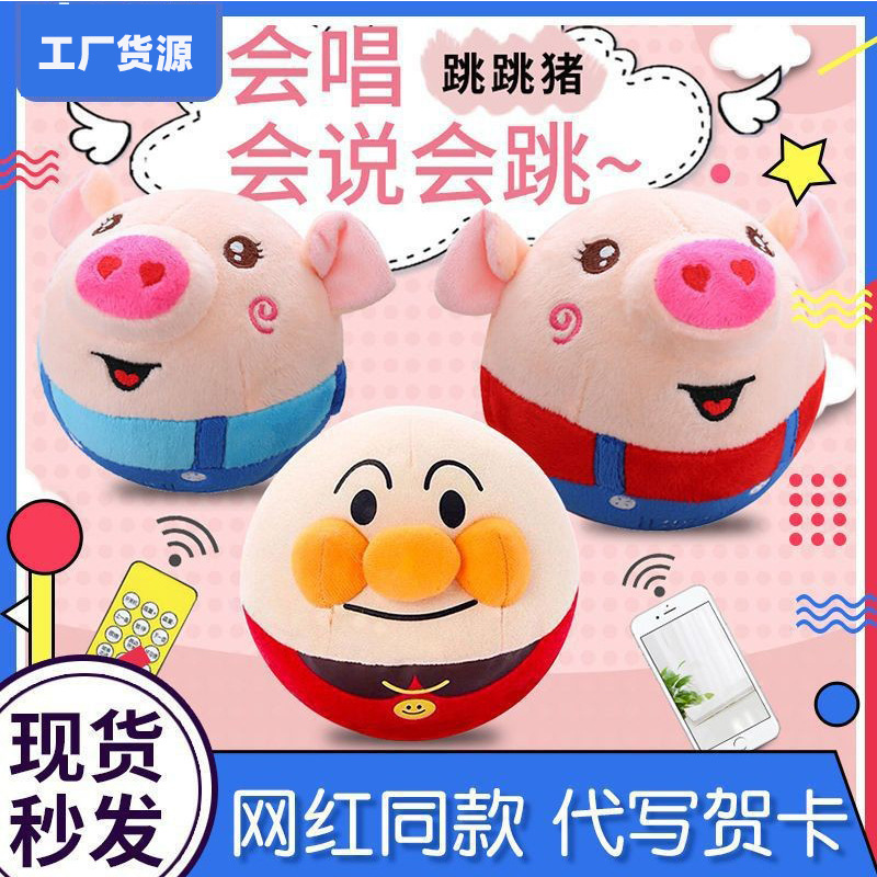 面包超人音乐跳跳球小丑球海草跳跳猪会说话抖音同款儿童毛绒玩具