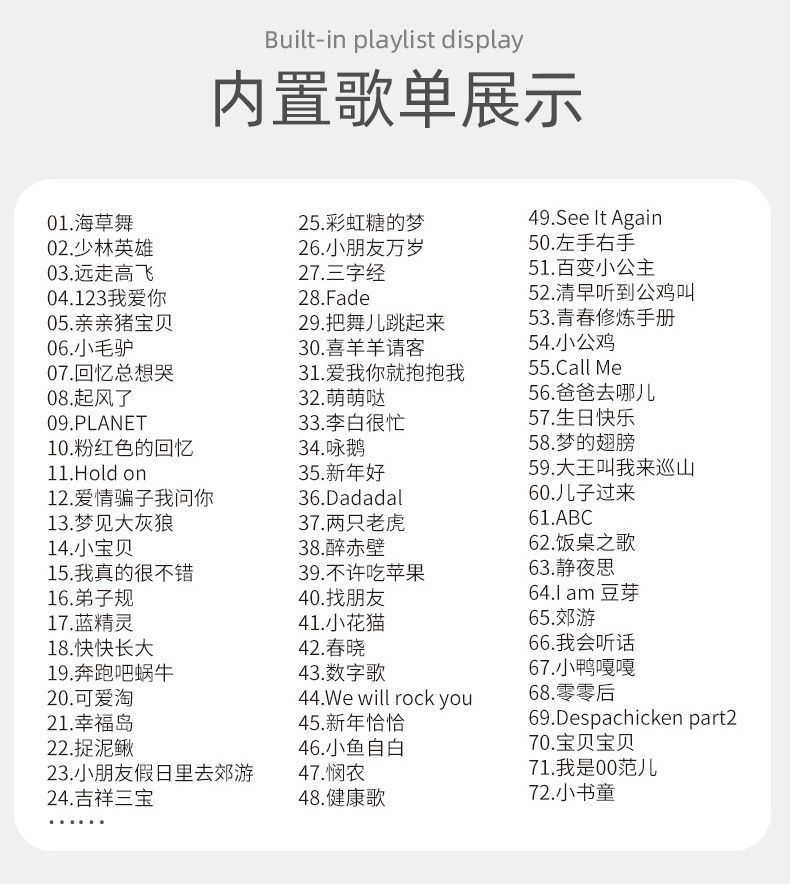 | bluetooth version unlimited songs + recording learning to speak(蓝牙版 人无限首歌+录音学说话) | USD $6.07 | 5000 piece available |