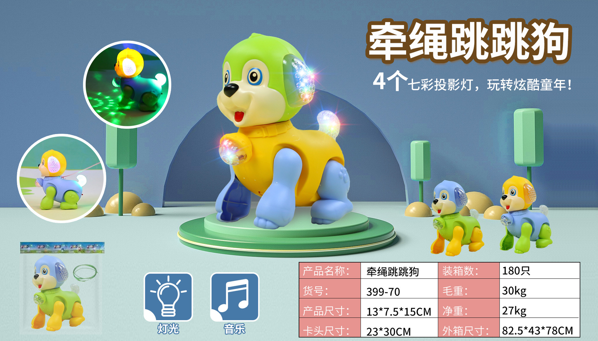 电动牵绳跳跳狗 牵绳猪 跳跳兔子电动发光音乐牵绳狗儿童玩具批发