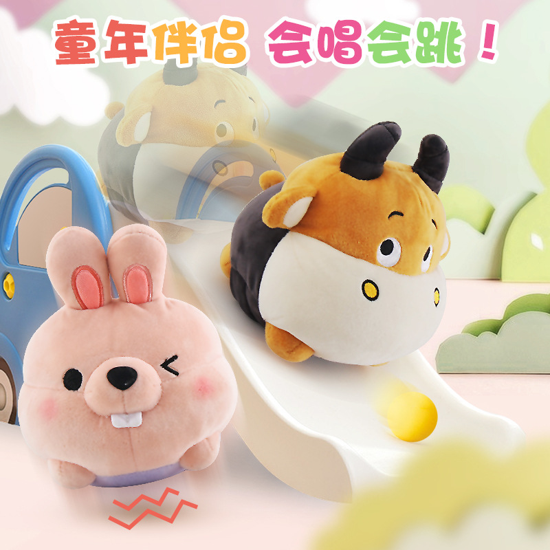 婴儿毛绒玩具电动音乐跳跳球会学说话弹跳公仔布娃娃玩具跳跳小猪