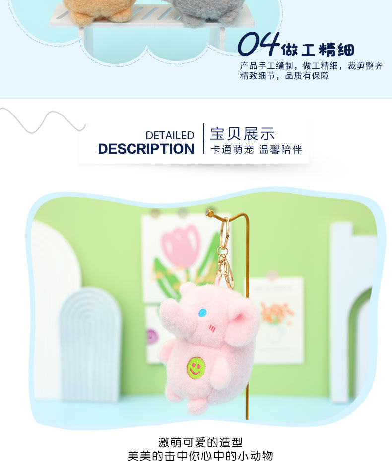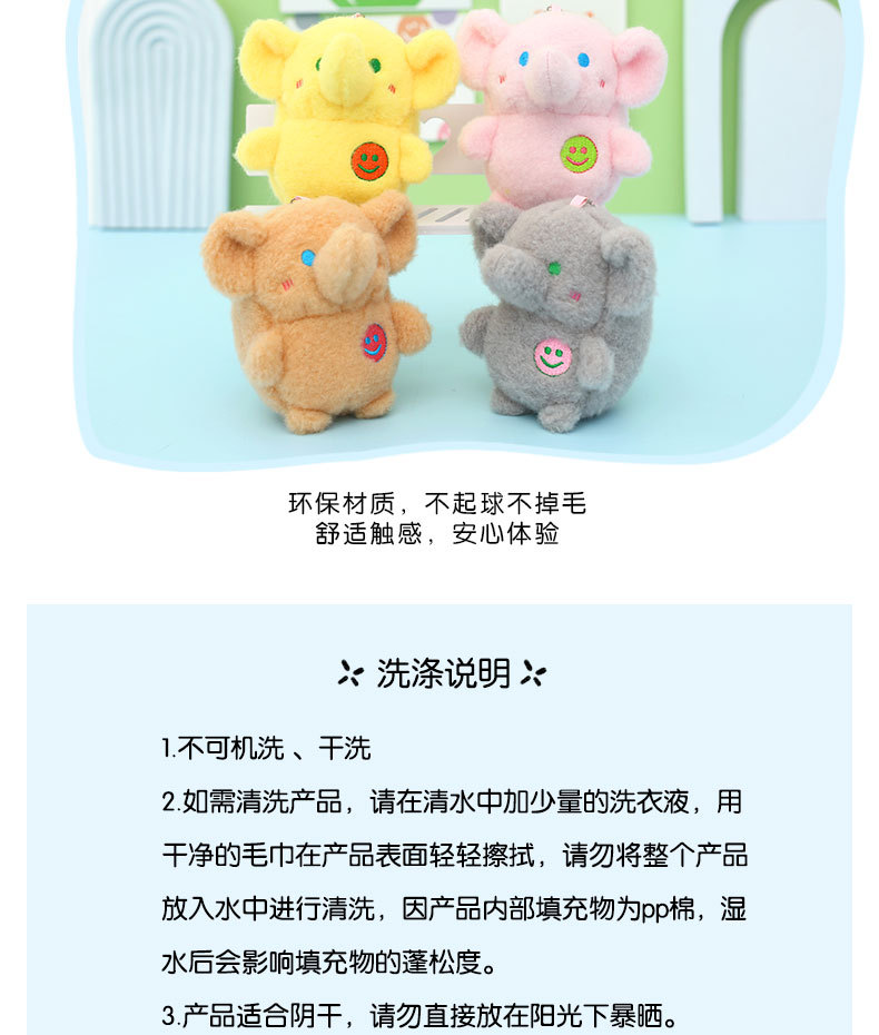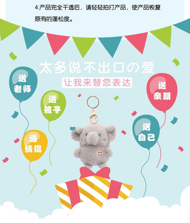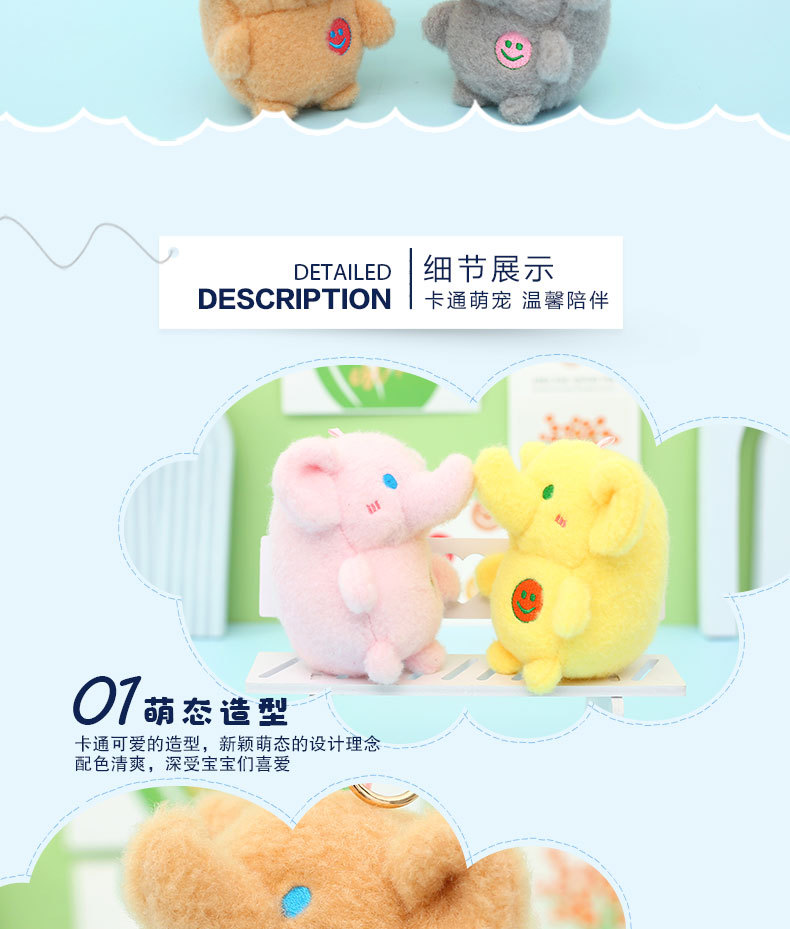 可爱萌卡通笑脸小象毛绒玩具钥匙扣挂件书包挂饰儿童玩偶娃娃礼物
