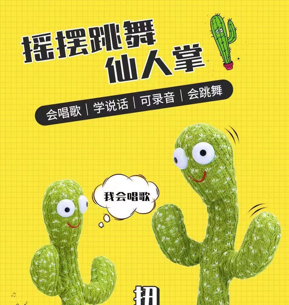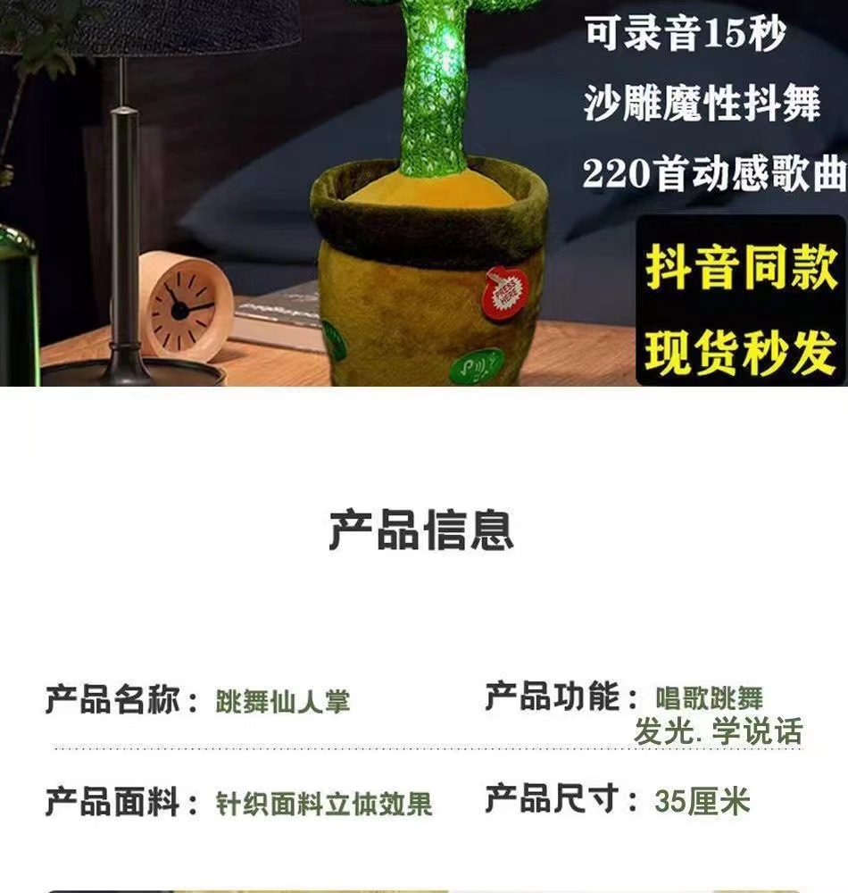 抖音同款网红跳舞仙人掌会唱歌学说话带彩灯录音搞笑儿童玩具批发
