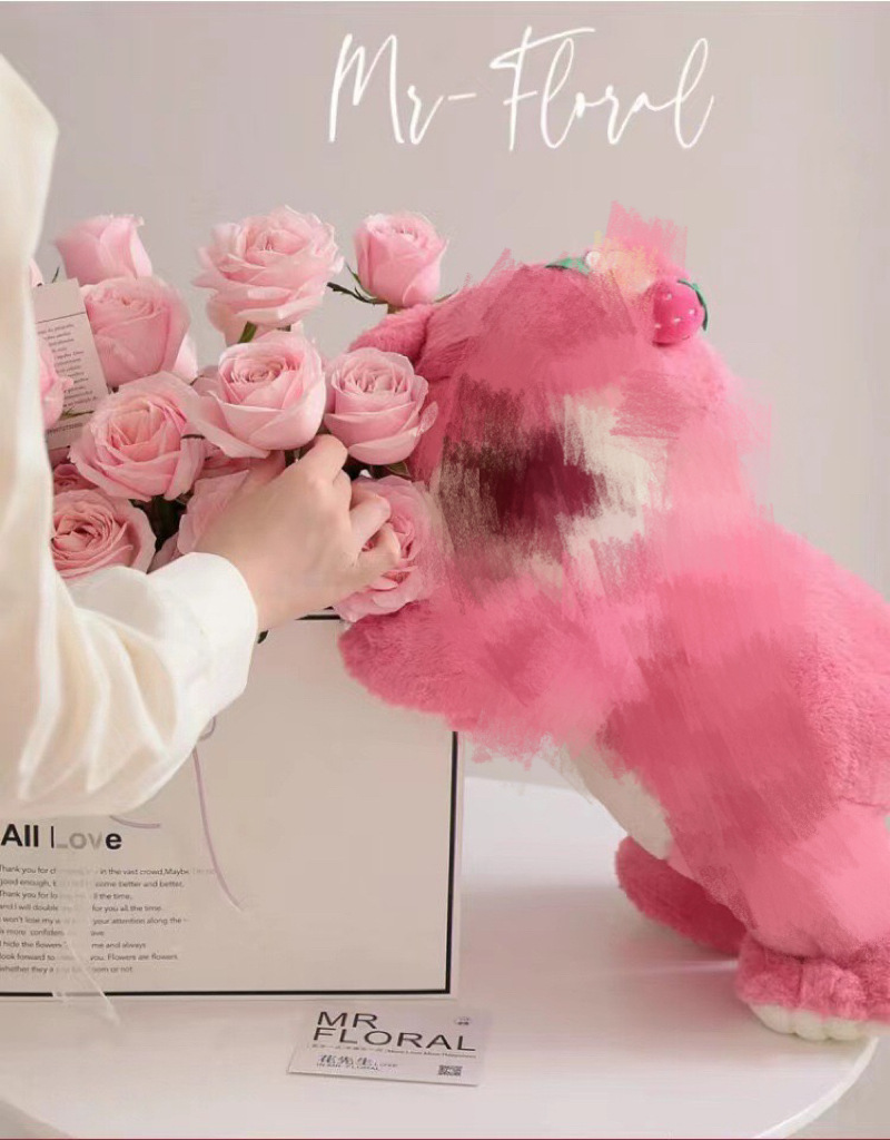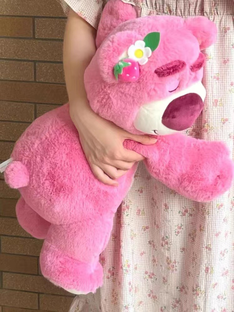 40厘米创意新款草莓熊公仔长条趴款少女心趴趴熊抱枕毛绒玩具男生
