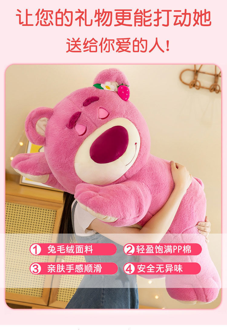 趴款莓熊粉色毛绒玩具倒霉熊睡公仔可爱抱枕靠垫送女友生日