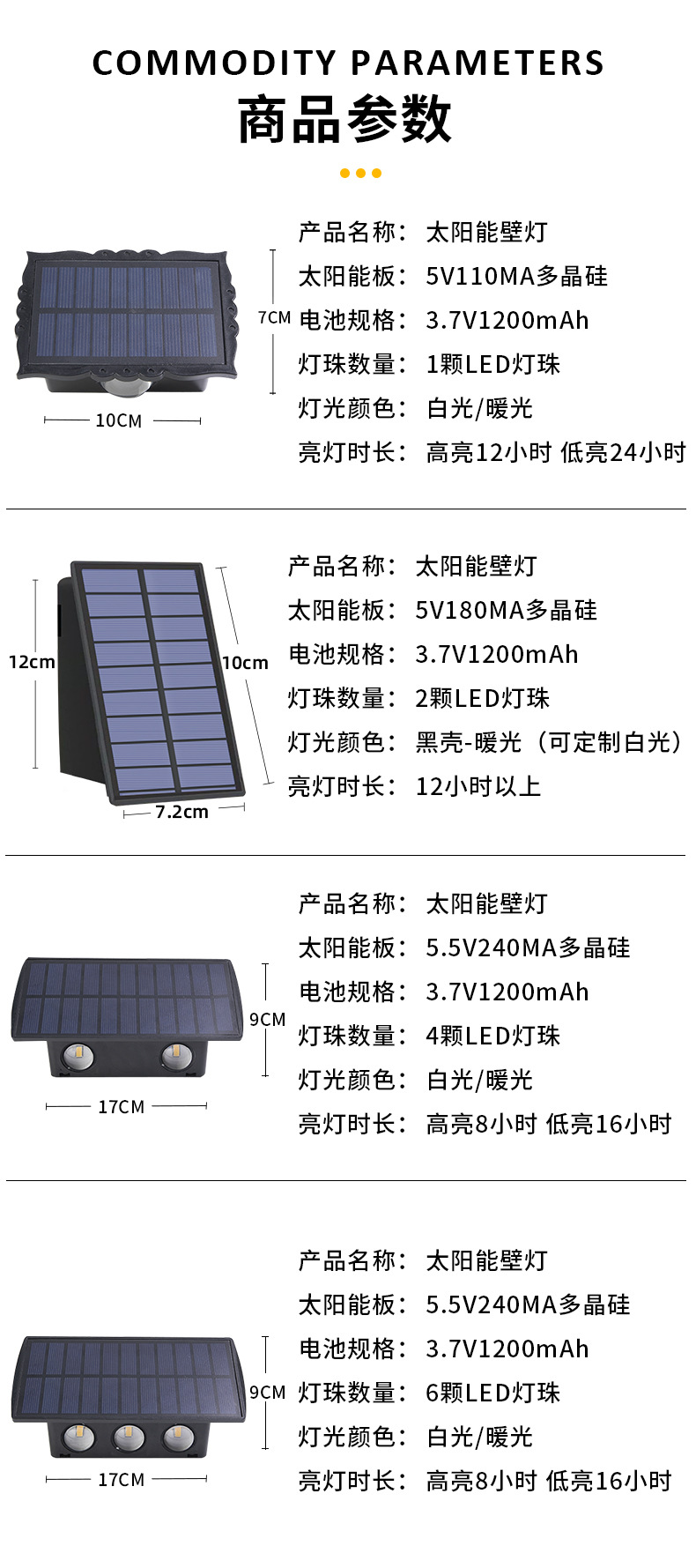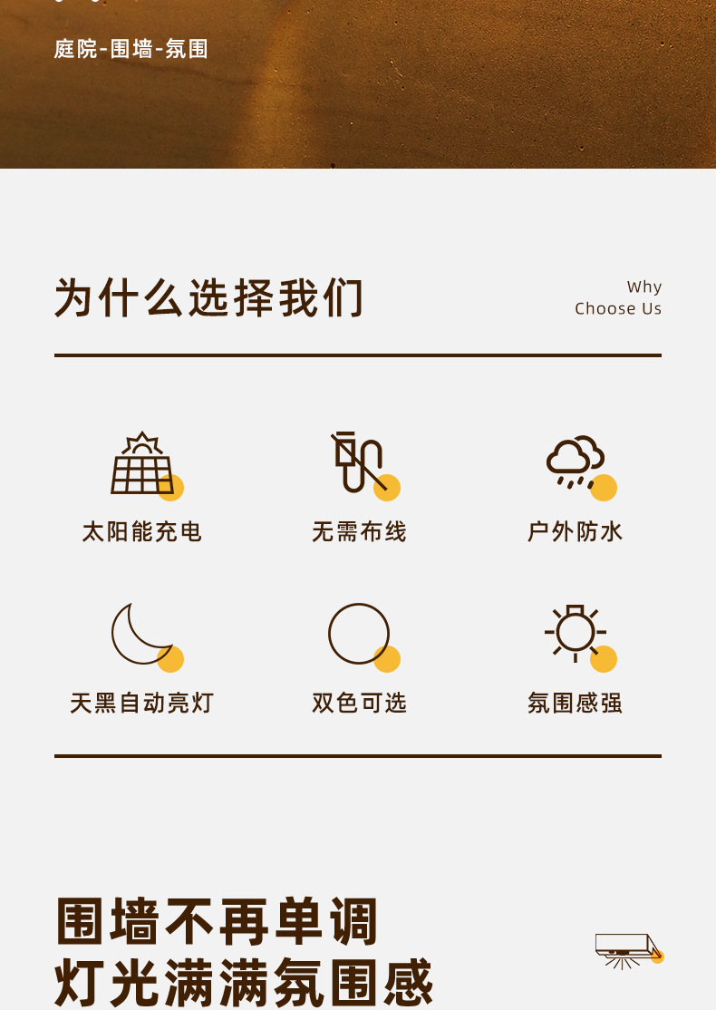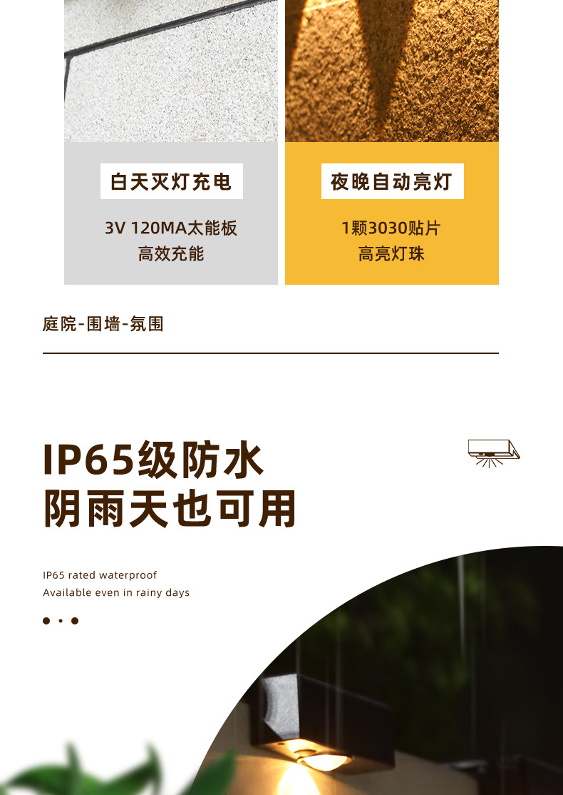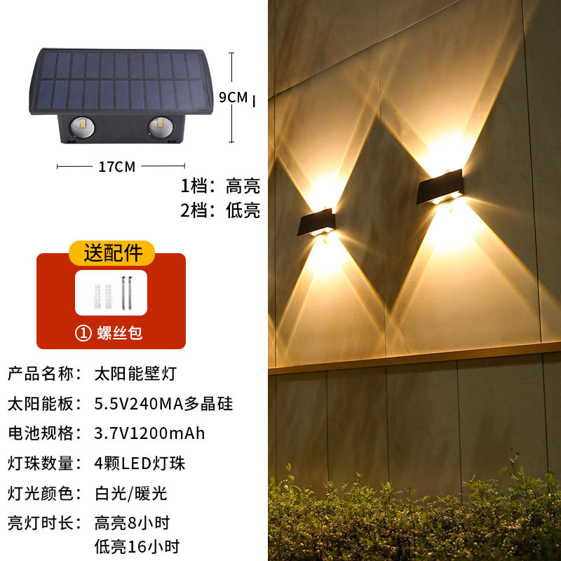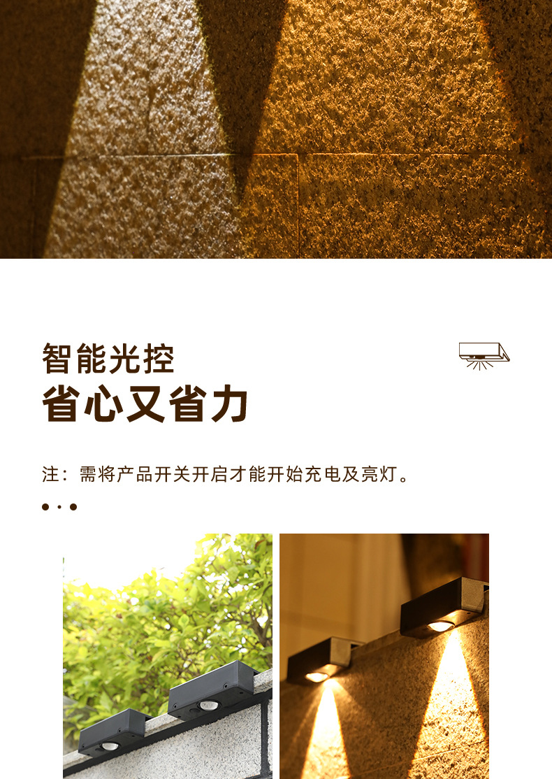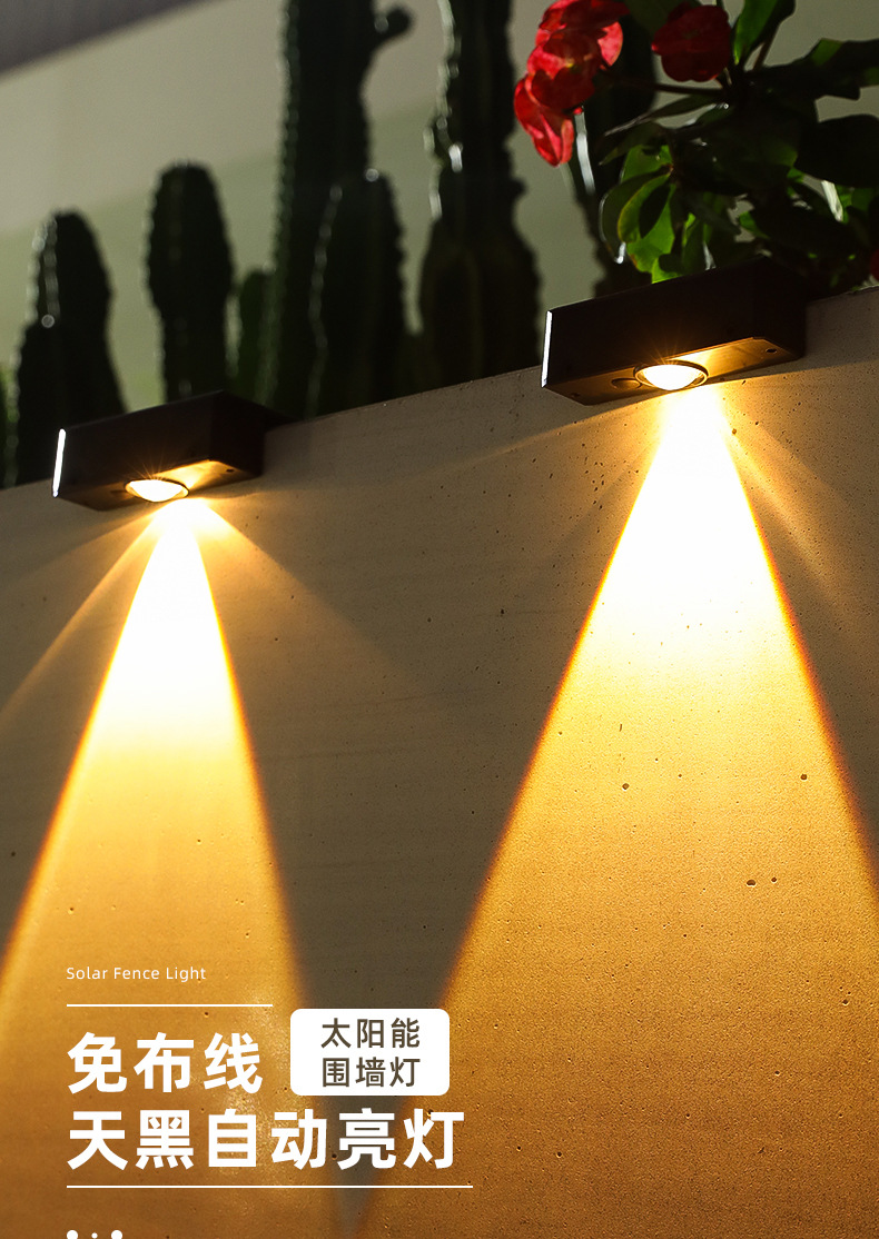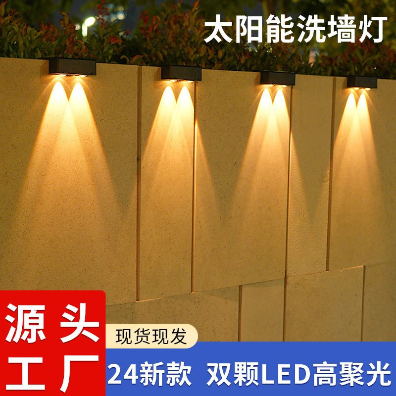 新款超亮太阳能壁灯户外花园院子布置围墙灯家用庭院氛围灯洗墙灯