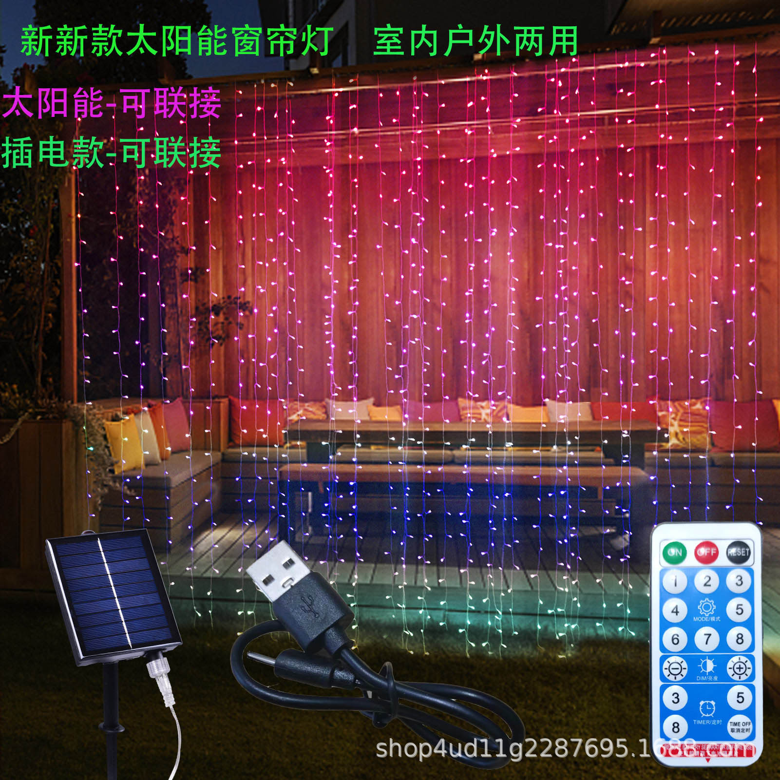 太阳能窗帘串灯USB家居户外庭院装饰led灯串铜线灯彩灯批发
