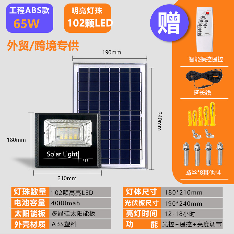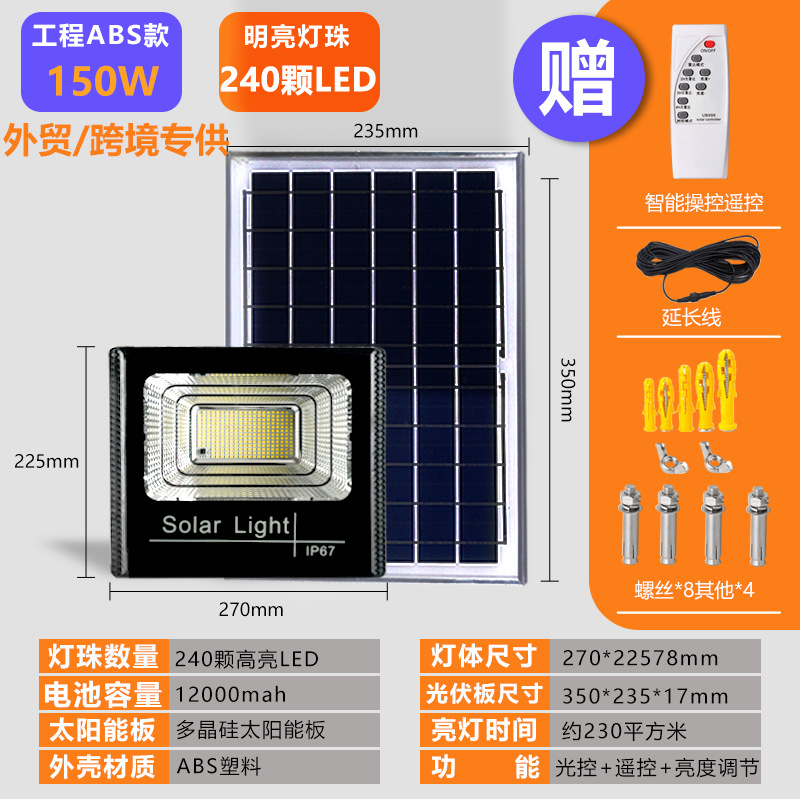 太阳能投光灯 户外防水庭院灯 跨境高亮led新农村照明大功率路灯