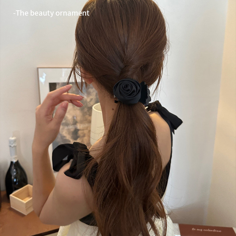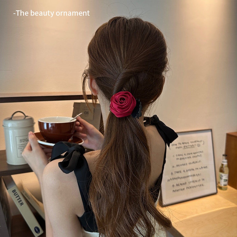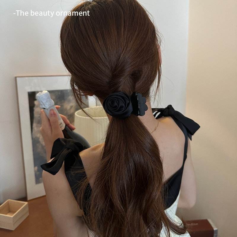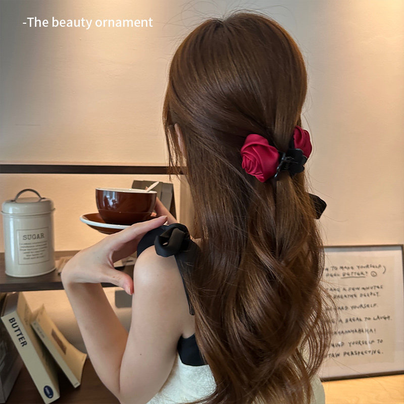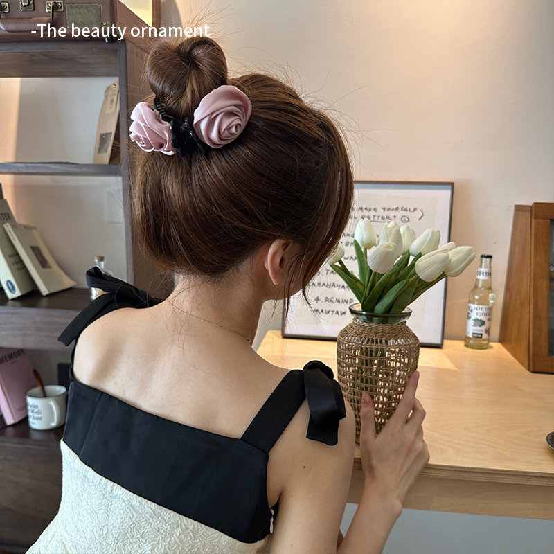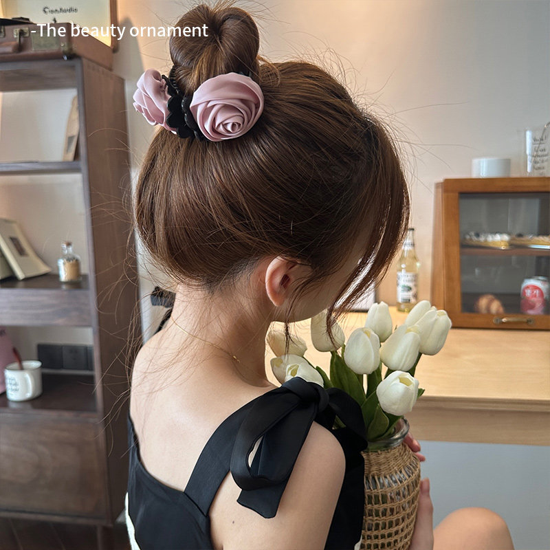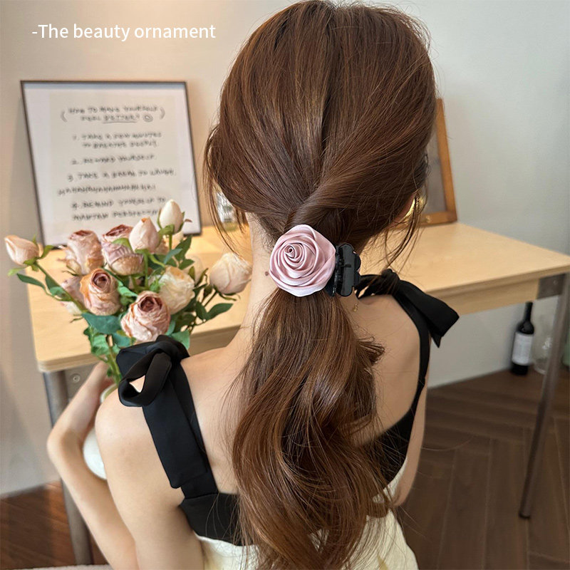 玫瑰花朵抓夹中号发复古缎面发夹法式发卡鲨鱼夹