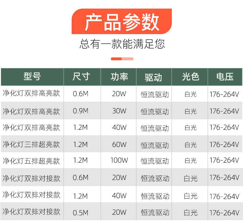 | 1.2 m 40w (double row docking)(1.2米40W(双排对接款)) | USD $4.47 | 7766 piece available |