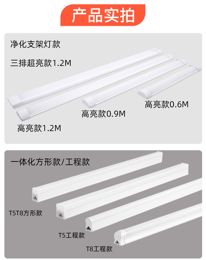 led灯管 T5一体化灯管T8净化支架灯1.2米节能光管 全套批发日光灯