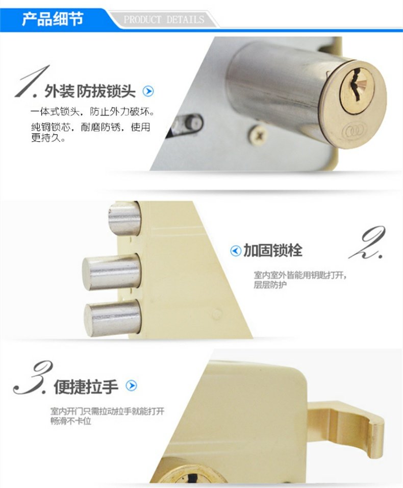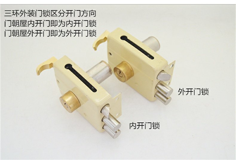 批发三环门锁老式外装门锁木门铁门防盗锁小棚门锁117通用型带钥