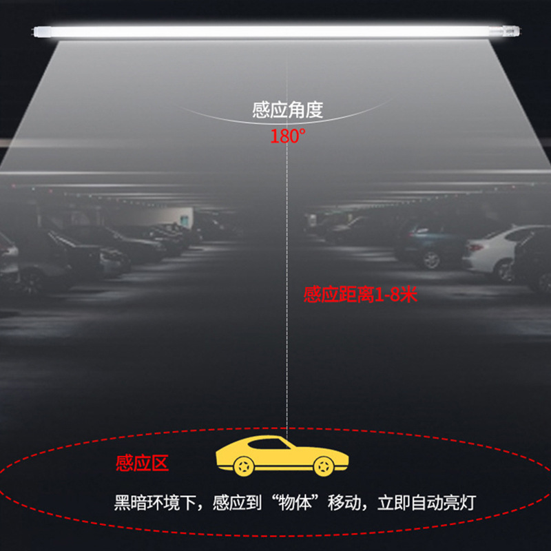 雷达感应T8灯管日光灯商场超市地下停车场玻璃LED节能车库灯管