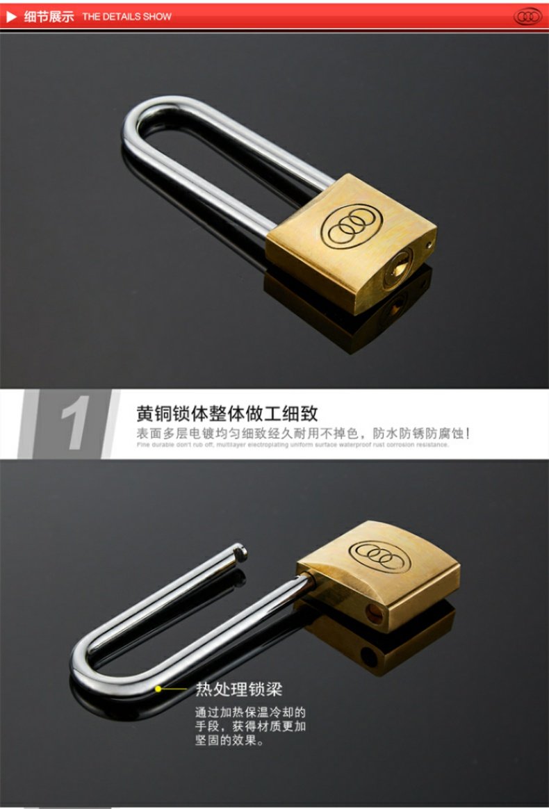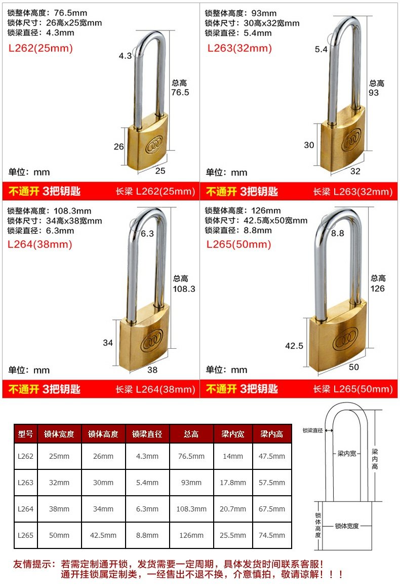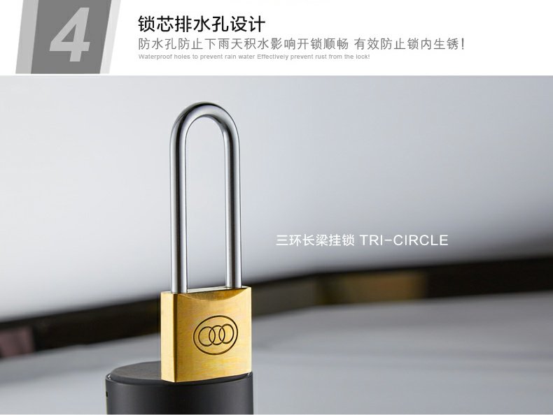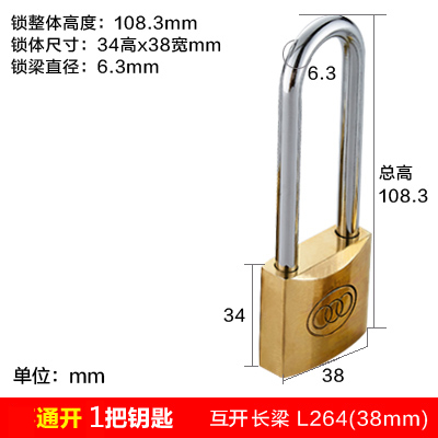 三环锁三环长梁长柄铜挂锁通开互开同心锁锁头