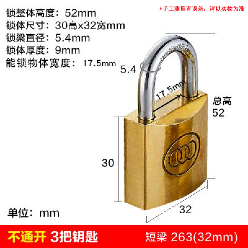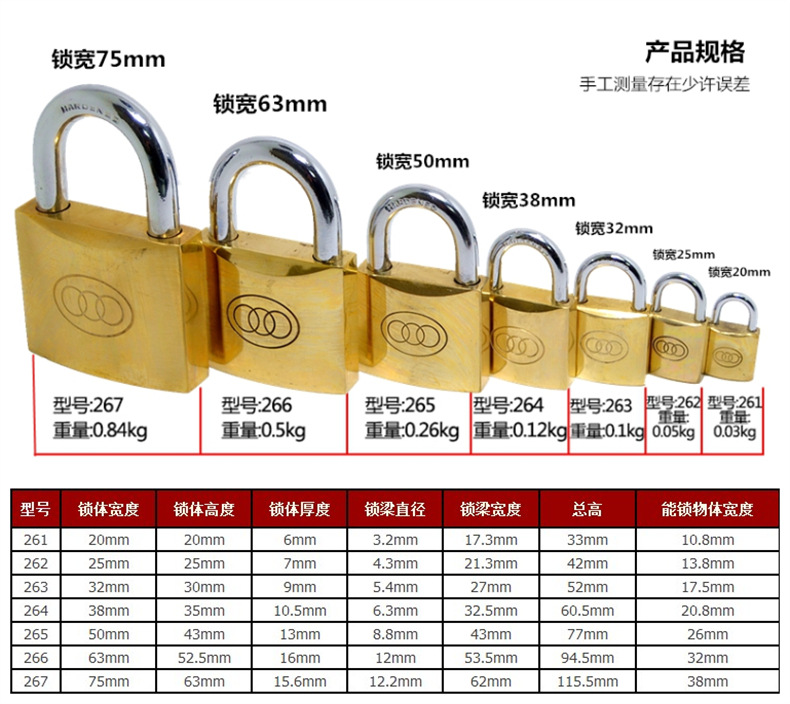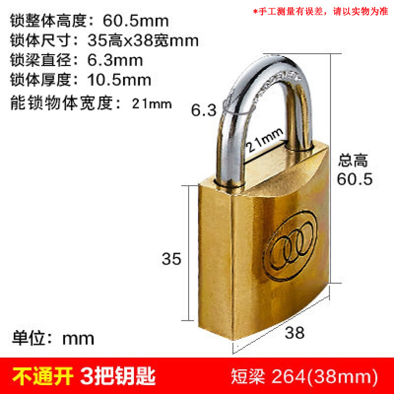 三环厚型铜挂锁263 2仓库大门5黄铜锁具宿舍柜子防盗锁不通开